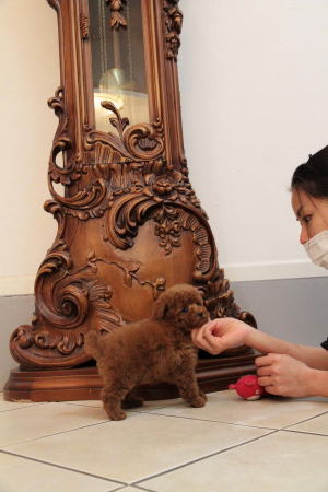 成犬時の予想サイズが2kg弱のティーカップサイズタイプの男の子です。
