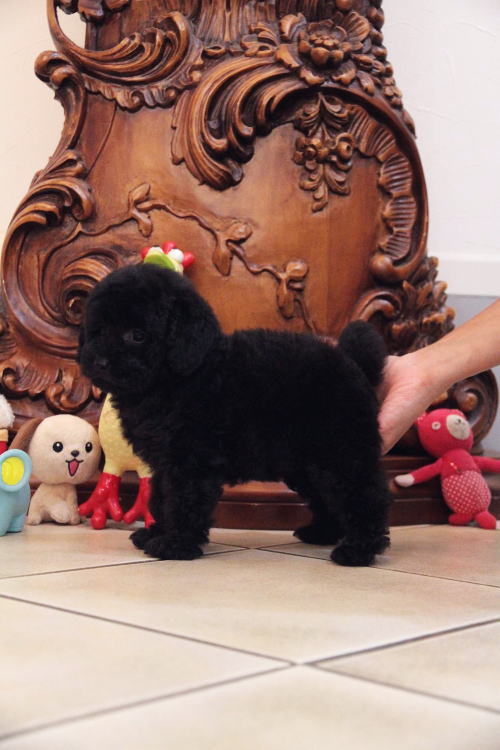 ★顔激カワ!毛量抜群のブラックちゃん★ 成犬時の予想サイズが2.5kg位のタイニーサイズ予想の女の子です。 胸に多少の差し毛が入ったので、その分価格を下げておりますが、健康上、生活上には一切問題ございません。 毛量はとても豊富で、綺麗なブラックカラーです。 フレンドリーな性格の子で、他の子犬達ととても仲良く遊んで生活しています♪ 目がクリクリしていて、マズルが詰まり、顔のとても可愛い子で、ゴリラ顔ではありません。 女の子らしい可愛らしい顔のタイプの子です。 健康診断とワクチンが済んでおり、すぐにお引き渡し可能です。 飼育の事やトリミングの事など、ご不安な点も、子犬の購入後の手続きの際に一つずつ丁寧にご指導いたしております。 ご安心して、お気軽にお問い合わせ下さいませ。 表示価格は現金特価となっております。 カードでお支払いのお客様は294,840円(税抜273,000円)でございます。 当社で飼育の際に実際に使用しているゲージやトイレなどの生活用品の一式がセットになって37,800円の飼育セットの御用意がございます。 犬種ごとに選択いただくゲージも違いますので、初めての方は、ワンちゃんの購入の際に、同時に飼育セットをお持ち帰りいただく事をオススメしております。 ワンちゃんも使い慣れているので、不安無く新しい生活がスタート出来ると思います。 |