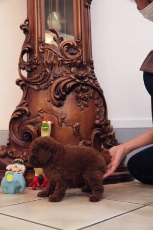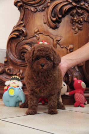 ★高い犬質!!クオリティの高い犬です!!★ 成犬時の予想サイズが2.8kg位のタイニーサイズを予想していますが、パパ1.2kg、ママ1.5kg(帝王切開で出産)、祖父母4匹、相祖父母のうち6匹がティーカップサイズな為、一人っ子で母乳たっぷりに育ちましたので、予想より小さく収まってしまう可能性もあります。 「出来れば小さくない子を」と言うご希望の方も多く居りますが、現在は成長が緩やかになって来ていますので、小さく収まってしまうかもしれない点は事前にご容赦いただきますようお願い致します。 毛量が抜群で、毛を掻き分けても地肌の見えないボリューム。 毛色は濃いレンガ色のディープレッドです。 しっかりしていて、サイズとしても骨折などの心配が無い事、低血糖の心配が無い事などがございます。 性格は、サイズとは違い、温厚でおっとり、ゆったりとした性格で、穏やかなタイプに育っています。 完全に甘えん坊のべったりさんです♪ 犬質がかなり高いので、一人でブリーディングを営んでいて、小さな種雄だと交配が大変だと思いますので、ショーチャレンジや種雄、お婿さんとしての候補としてもオススメです!! 1回目のワクチン接種と健康診断が終わっており、いつでもお引き渡しが可能です。 飼育の事やトリミングの事など、ご不安な点も、子犬の購入後の手続きの際に一つずつ丁寧にご指導いたしております。 ご安心して、お気軽にお問い合わせ下さいませ。 表示価格は現金特価となっております。 カードでお支払いのお客様は283,500円(税抜262,500円)でございます。 当社で飼育の際に実際に使用しているゲージやトイレなどの生活用品の一式がセットになって37,800円の飼育セットの御用意がございます。 犬種ごとに選択いただくゲージも違いますので、初めての方は、ワンちゃんの購入の際に、同時に飼育セットをお持ち帰りいただく事をオススメしております。 ワンちゃんも使い慣れているので、不安無く飼育を開始いただけると思います。 |