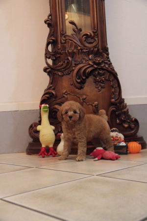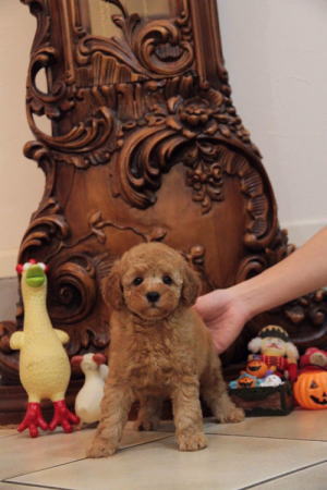 ★三兄弟に囲まれた紅一点★ 成犬時の予想サイズが2.5kg位の小振りタイニーサイズタイプの女の子です。 色味は濃いディープレッドで、顔がハッキリ写る様に、カメラの明るさを明るくして撮影していますので、実物の方が濃いです。 胸にミスカラーが入りましたので、その分価格を低く設定しておりますが、ミスカラー以外は申し分の無いかなり良い犬質です。 毛量がとっても豊富なので、密度があり、 毛を掻き分けても地肌が出ない子です。 性格はおっとり男の子3匹に囲まれて育ったので、女の子と言うよりはボーッとした男の子の性格に育っています。 1回目のワクチン接種と健康診断が終わっており、すぐにお引き渡しが可能です。 飼育の事やトリミングの事など、ご不安な点も、子犬の購入後の手続きの際に一つずつ丁寧にご指導いたしております。 ご安心して、お気軽にお問い合わせ下さいませ。 表示価格は現金特価となっております。 カードでお支払いのお客様は362,880円(税抜336,000円)でございます。 当社で飼育の際に実際に使用しているゲージやトイレなどの生活用品の一式がセットになって37,800円の飼育セットの御用意がございます。 犬種ごとに選択いただくゲージも違いますので、初めての方は、ワンちゃんの購入の際に、同時に飼育セットをお持ち帰りいただく事をオススメしております。 ワンちゃんも使い慣れているので、不安無く新しい生活がスタート出来ると思います。 |