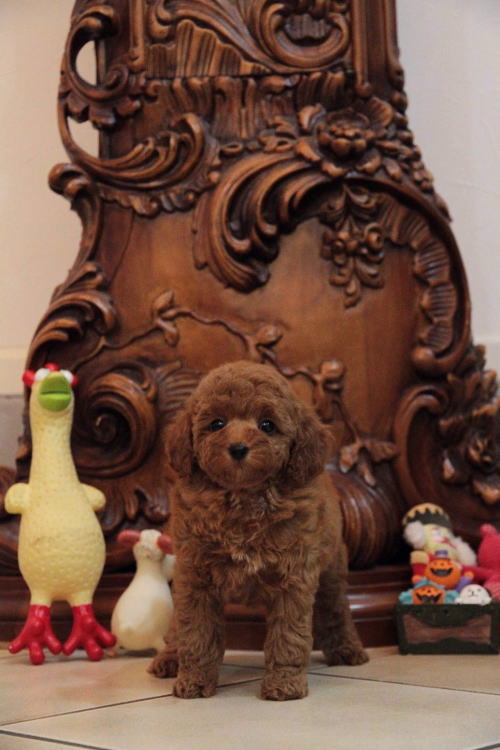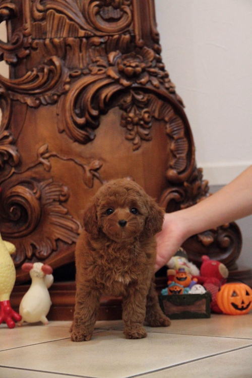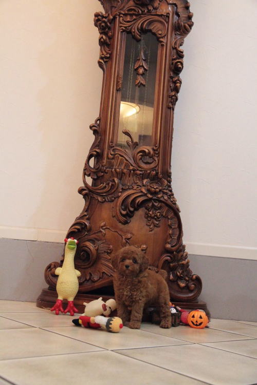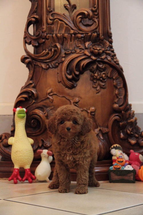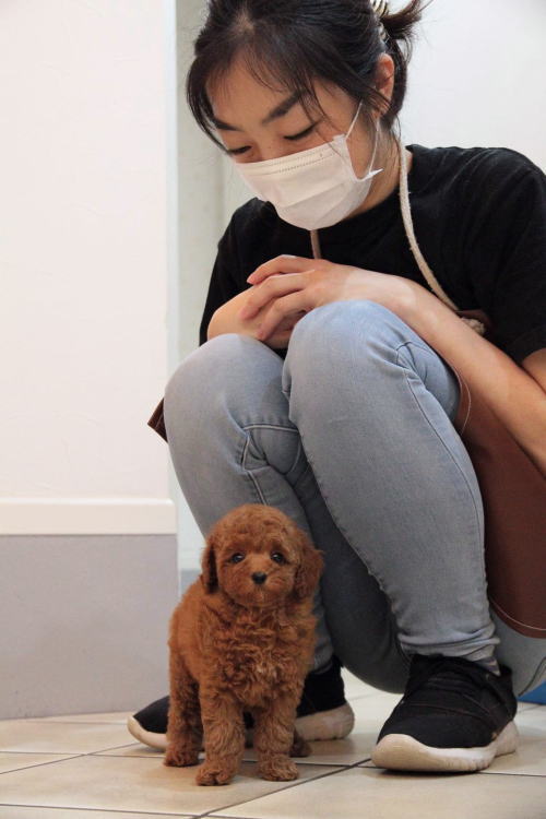 ★三兄弟に囲まれた紅一点★ 成犬時の予想サイズが2.5kg位の小振りタイニーサイズタイプの女の子です。 色味は濃いディープレッドで、顔がハッキリ写る様に、カメラの明るさを明るくして撮影していますので、実物の方が濃いです。 胸にミスカラーが入りましたので、その分価格を低く設定しておりますが、ミスカラー以外は申し分の無いかなり良い犬質です。 毛量がとっても豊富なので、密度があり、 毛を掻き分けても地肌が出ない子です。 性格はおっとり男の子3匹に囲まれて育ったので、女の子と言うよりはボーッとした男の子の性格に育っています。 1回目のワクチン接種と健康診断が終わっており、すぐにお引き渡しが可能です。 飼育の事やトリミングの事など、ご不安な点も、子犬の購入後の手続きの際に一つずつ丁寧にご指導いたしております。 ご安心して、お気軽にお問い合わせ下さいませ。 表示価格は現金特価となっております。 カードでお支払いのお客様は362,880円(税抜336,000円)でございます。 当社で飼育の際に実際に使用しているゲージやトイレなどの生活用品の一式がセットになって37,800円の飼育セットの御用意がございます。 犬種ごとに選択いただくゲージも違いますので、初めての方は、ワンちゃんの購入の際に、同時に飼育セットをお持ち帰りいただく事をオススメしております。 ワンちゃんも使い慣れているので、不安無く新しい生活がスタート出来ると思います。 |