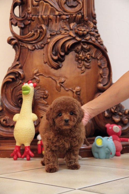 ★美人姉妹の花ちゃん★ 成犬時の予想サイズが2.2kg位のかなり小さめタイニーサイズタイプの女の子です。 姉妹のどちらかを残そうとリビングでママ犬と共に飼育してしまっているので、未だにお乳を飲んでおり、噛み合わせが3mm程度のアンダーショットです。 噛み合わせについては毎回ご説明しておりますが、犬は、横たわるママ犬のお乳を首が座っていない赤ちゃんが飲みやすいように、産まれた時には全員アンダーで生まれますが、お乳から完全に離れますと、少しずつ上顎の成長が促されます。 また、犬は歯を見せて笑わない為、3mmですと見た目では現在も全く分かりません。 毛量がとっても豊富なタイプになります。 お顔が美人の姉妹で、マズルも短く可愛らしい印象です。 姉妹のどちらかを残そうと思っていましたが、ママ犬の家系がティーカップで、ママ自身もティーカップの帝王切開で今回の出産、パパ犬も2.3kgで、パパ犬の家系もティーカップの為、やはりどうしても小さく、繁殖犬としては可愛そうなので手放す事に致しました。 成長を見ていた為、月齢が多少経っていますが、低血糖などの不安も無く飼育いただけます。 コロッコロのムチムチの幼児体型をしています。 1回目のワクチン接種と健康診断が終わっており、すぐにお引き渡しが可能です。 飼育の事やトリミングの事など、ご不安な点も、子犬の購入後の手続きの際に一つずつ丁寧にご指導いたしております。 ご安心して、お気軽にお問い合わせ下さいませ。 表示価格は現金特価となっております。 カードでお支払いのお客様は317,520円(税抜294,000円)でございます。 当社で飼育の際に実際に使用しているゲージやトイレなどの生活用品の一式がセットになって37,800円の飼育セットの御用意がございます。 犬種ごとに選択いただくゲージも違いますので、初めての方は、ワンちゃんの購入の際に、同時に飼育セットをお持ち帰りいただく事をオススメしております。 ワンちゃんも使い慣れているので、不安無く新しい生活がスタート出来ると思います。 ! |