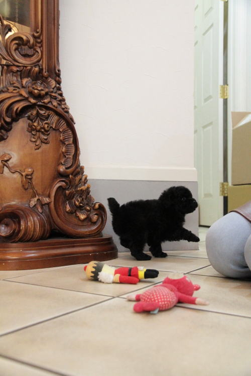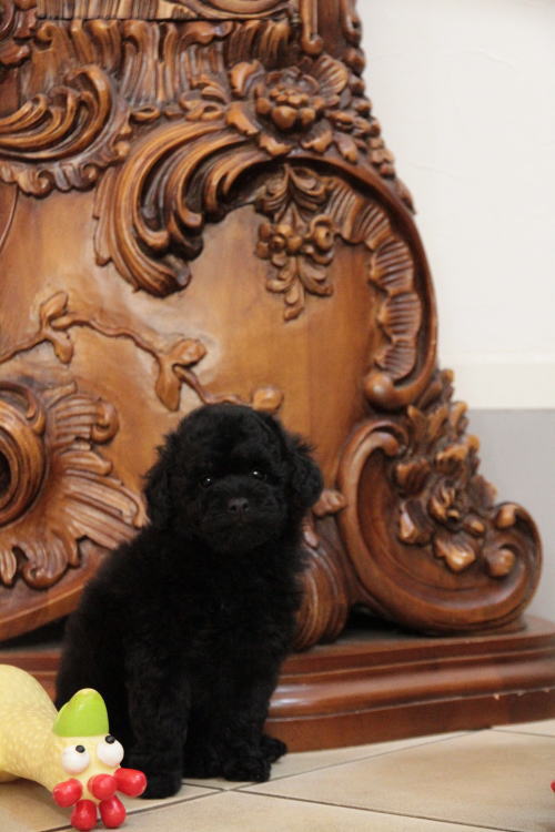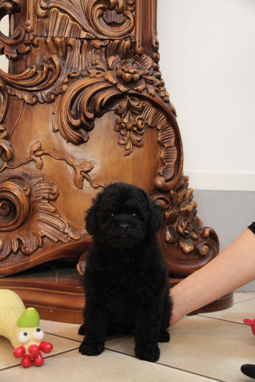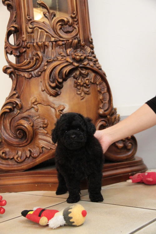 ★代々退色しないブラックの家系・女の子★ 成犬時の予想サイズが2.5kg位のタイニーサイズ予想の女の子です。 毛量はとても豊富で、綺麗なブラックカラーです。 代々、退色を殆どせず黒いまま老衰を迎える程の綺麗なブラックカラーの家系です。 フレンドリーな性格の子で、他の子犬達ととても仲良く遊んで生活しています♪ 目がクリクリしていて、マズルが詰まり、顔のとても可愛い子で、ゴリラ顔ではありません。 女の子らしい可愛らしい顔のタイプの子です。 健康診断とワクチンが済んでおり、すぐにお引き渡し可能です。 飼育の事やトリミングの事など、ご不安な点も、子犬の購入後の手続きの際に一つずつ丁寧にご指導いたしております。 ご安心して、お気軽にお問い合わせ下さいませ。 表示価格は現金特価となっております。 カードでお支払いのお客様は430,920円(税抜399,000円)でございます。 当社で飼育の際に実際に使用しているゲージやトイレなどの生活用品の一式がセットになって37,800円の飼育セットの御用意がございます。 犬種ごとに選択いただくゲージも違いますので、初めての方は、ワンちゃんの購入の際に、同時に飼育セットをお持ち帰りいただく事をオススメしております。 ワンちゃんも使い慣れているので、不安無く新しい生活がスタート出来ると思います。 |