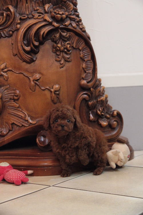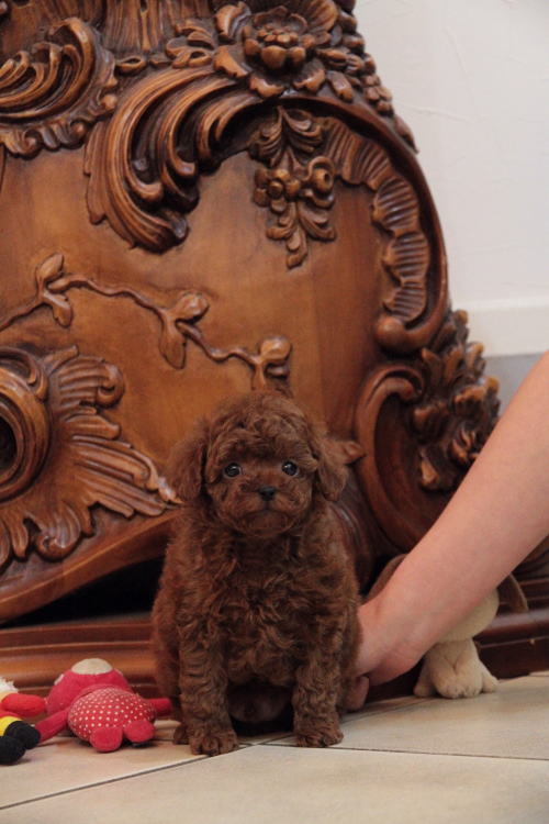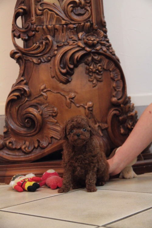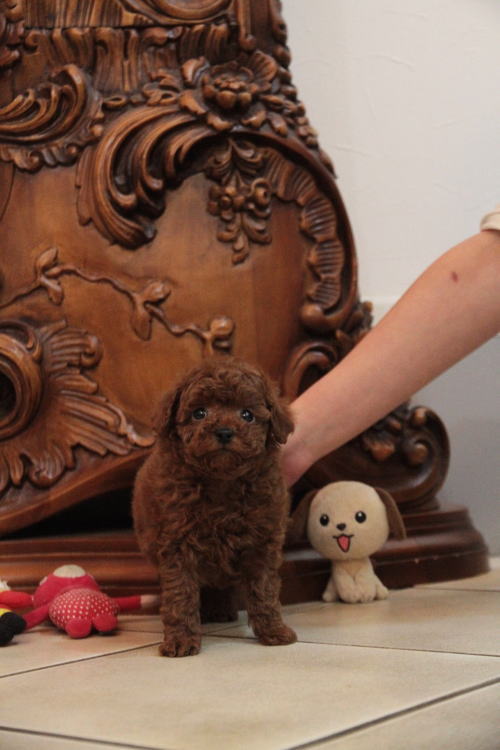★高い犬質!!クオリティの高い犬です!!★ 成犬時の予想サイズが1.8~2kg位のムクムクのティーカップサイズな感じを予想している男の子です。 毛量が抜群で、毛を掻き分けても地肌の見えないボリューム。 毛色は濃いレンガ色のディープレッドです。 目がとっても丸く大きい子で、マズルは詰まっており、顔回りの毛が伸びたら更に可愛さが引き出されます。 性格は、温厚でおっとり、ゆったりとした性格で、穏やかなタイプに育っています。 犬質がかなり高いので、種雄、お婿さんとしての候補としてもオススメです!! 1回目のワクチン接種と健康診断が終わっており、いつでもお引き渡しが可能です。 飼育の事やトリミングの事など、ご不安な点も、子犬の購入後の手続きの際に一つずつ丁寧にご指導いたしております。 ご安心して、お気軽にお問い合わせ下さいませ。 表示価格は現金特価となっております。 カードでお支払いのお客様は317,520円(税抜294,000円)でございます。 当社で飼育の際に実際に使用しているゲージやトイレなどの生活用品の一式がセットになって37,800円の飼育セットの御用意がございます。 犬種ごとに選択いただくゲージも違いますので、初めての方は、ワンちゃんの購入の際に、同時に飼育セットをお持ち帰りいただく事をオススメしております。 ワンちゃんも使い慣れているので、不安無く飼育を開始いただけると思います。 |