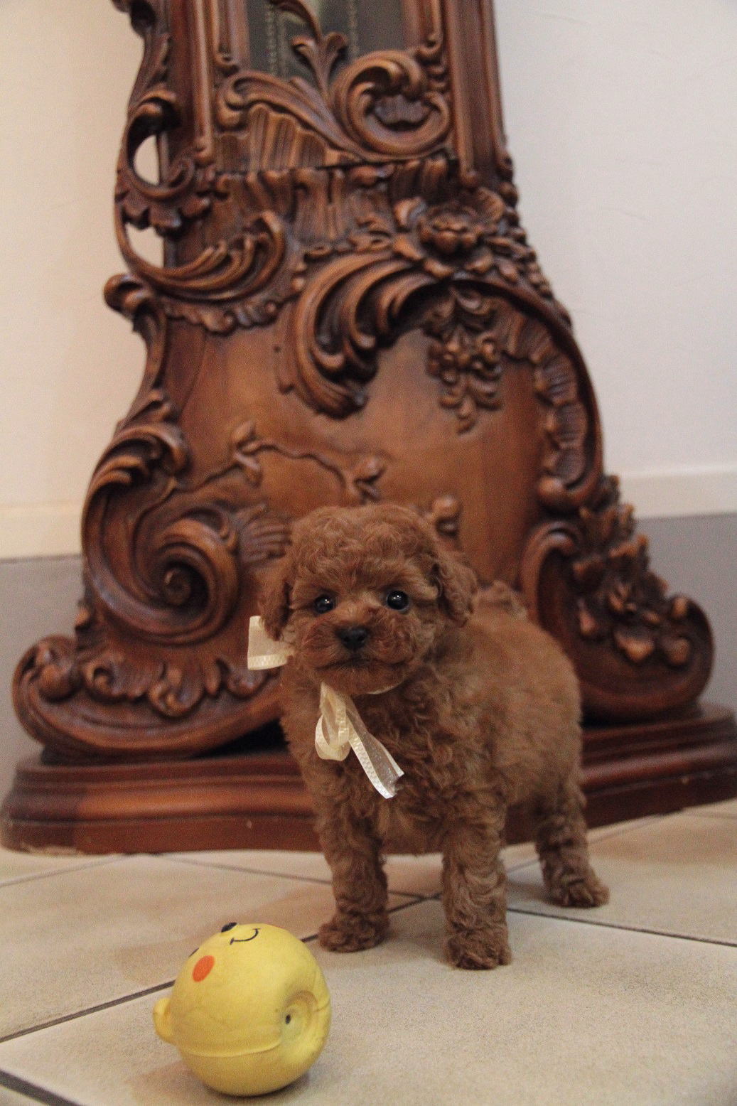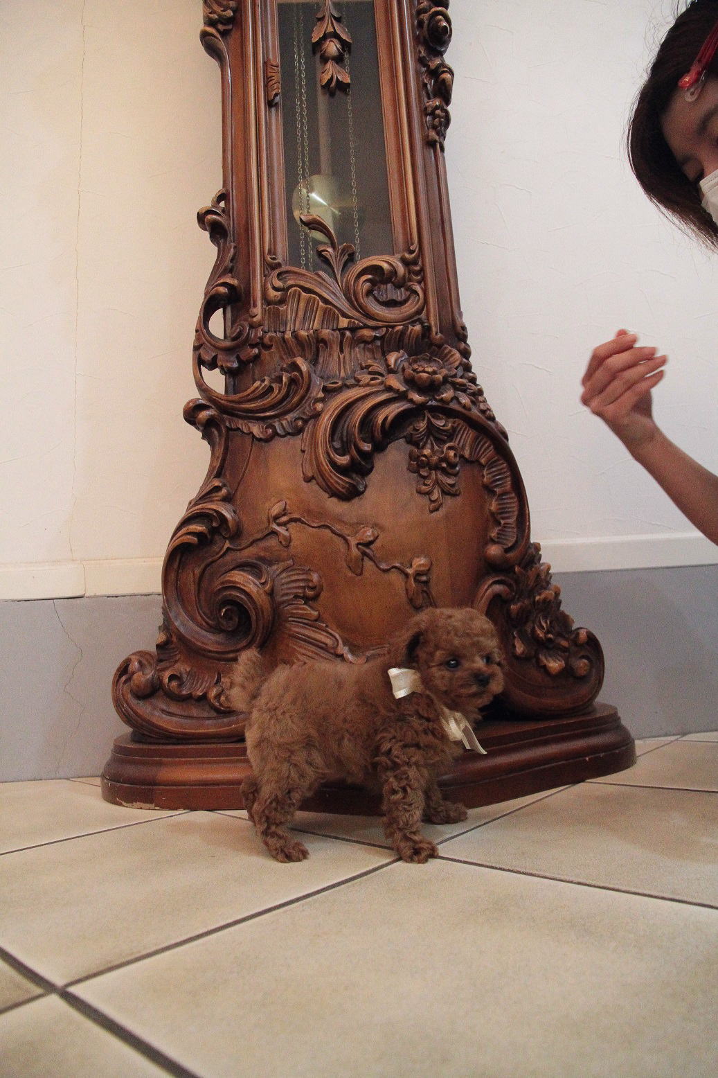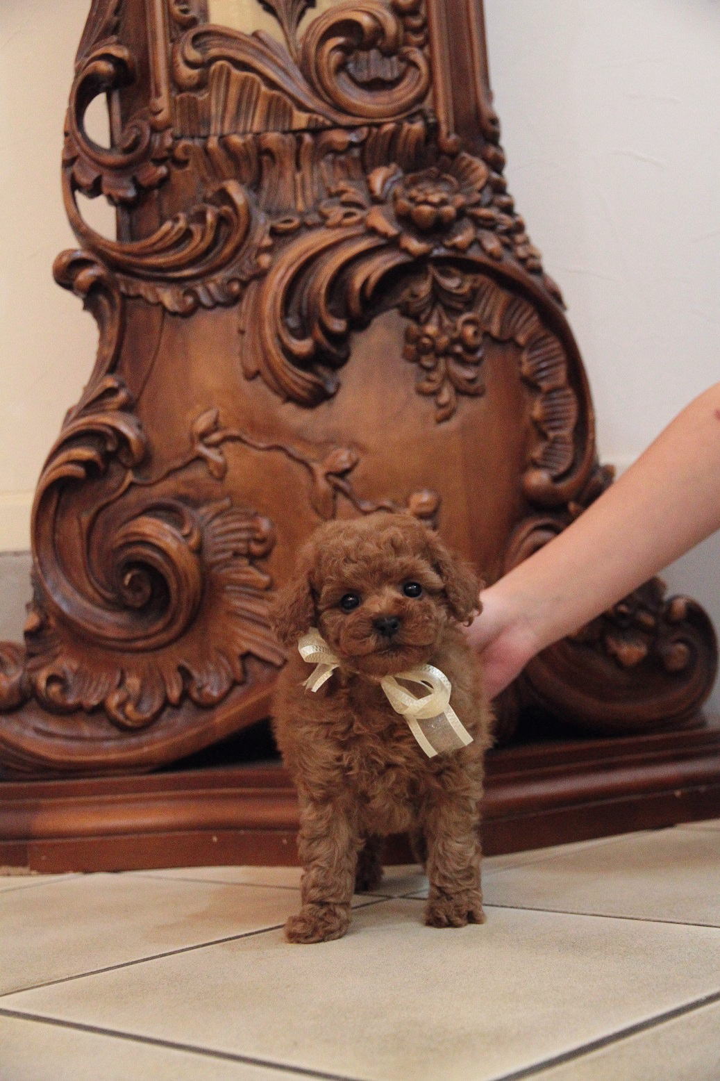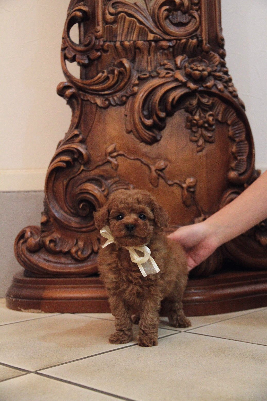 ★目の大きな小振りタイニーサイズくん★ 成犬時の予想サイズが2.3kgで、タイニー前半位の小振りタイニーサイズを予想している男の子です。 毛量がとても豊富で、大人の毛質になりましたら、様々なデザインカットが楽しめます。 骨格や肉付きはとてもしっかりしていて、サイズは小ぶりですが、コロコロのムチムチで低血糖の心配が無いです。 目がとても大きく、写真撮影の向きによっては、黒目が収まらない程に大きな瞳をしております。 とても人懐こく、人間相手に遊ぶ事も好きですが、犬と遊んだり、オモチャで一人遊びをしてくれるようなとても楽に子育てが出来る子で助かっています。 かかりつけ獣医師による健康診断で診ていただいてますが、小出ベソがありますが、生涯、手術など必要になるような出べそでは無いとご判断いただいている、本当に小さな出ベソがありますので、その分、若干の低い価格設定にしております。全く問題ありませんので、ご安心くださいませ。診て頂いた病院はワクチン証明書に記載されていますので、ご不安な方は引き続きご利用いただける病院となっております。 その点を踏まえて、当初の掲載より価格を引き下げました。 1回目のワクチン接種と健康診断が終わっており、いつでもお引き渡しが可能です。 飼育の事やトリミングの事など、ご不安な点も、子犬の購入後の手続きの際に一つずつ丁寧にご指導いたしております。 ご安心して、お気軽にお問い合わせ下さいませ。 表示価格は現金特価となっております。 カードでお支払いのお客様は204,120円(税抜189,000円)でございます。 当社で飼育の際に実際に使用しているゲージやトイレなどの生活用品の一式がセットになって37,800円の飼育セットの御用意がございます。 犬種ごとに選択いただくゲージも違いますので、初めての方は、ワンちゃんの購入の際に、同時に飼育セットをお持ち帰りいただく事をオススメしております。 ワンちゃんも使い慣れているので、不安無く飼育を開始いただけると思います。 |