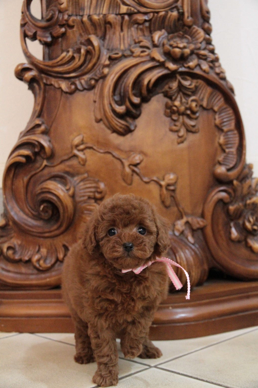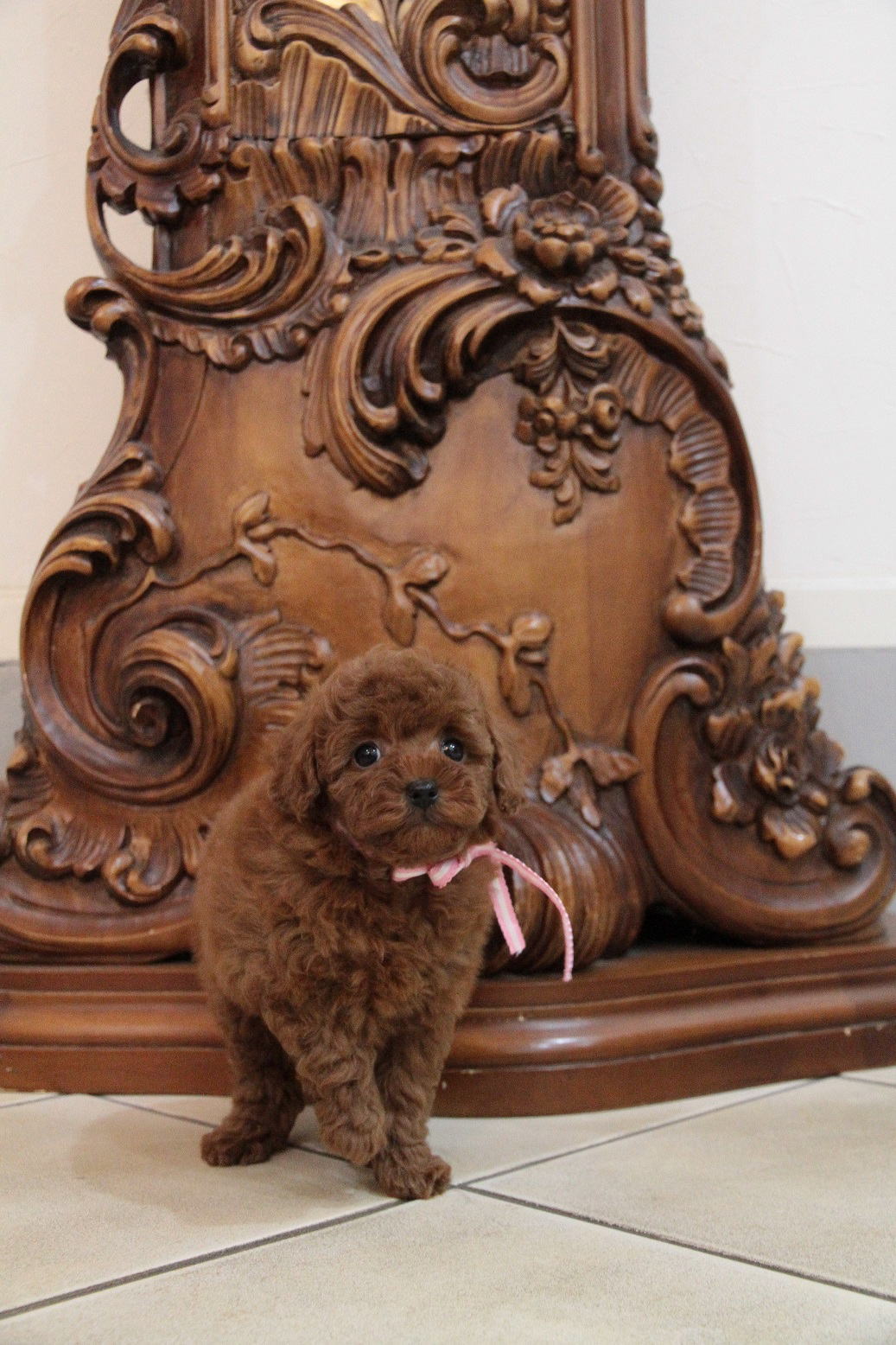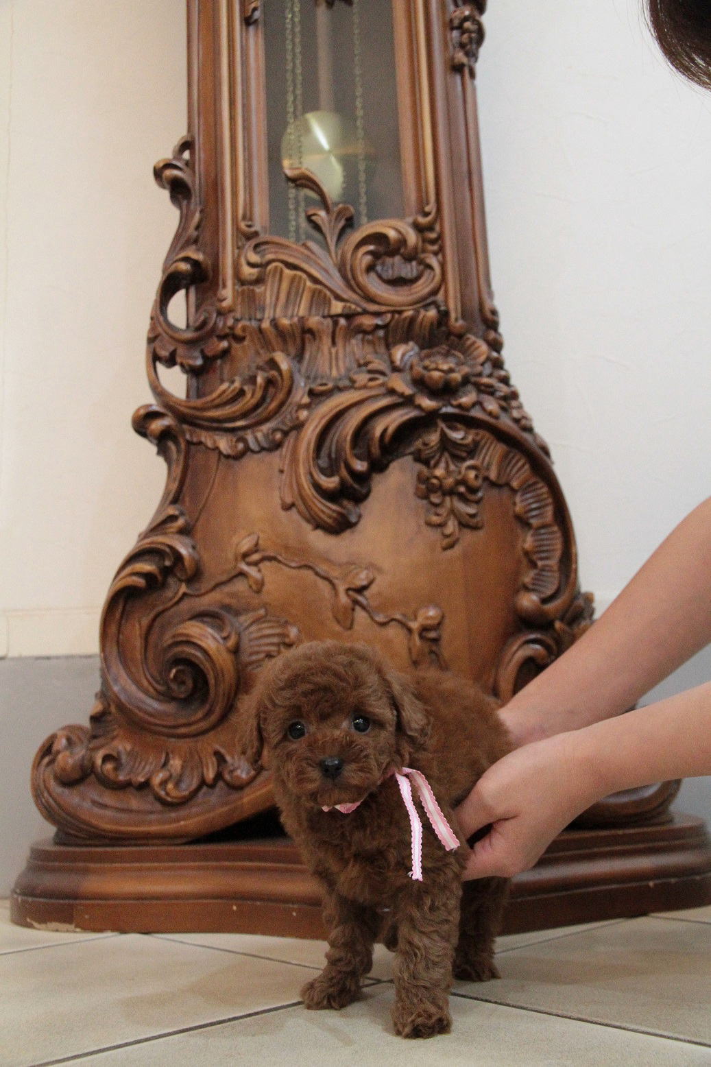 ★ディープレッド・毛量抜群・激カワ・目真ん丸★ 成犬時の予想サイズが2.5kg位の小振りタイニーサイズのコロコロした感じで仕上がりそうです。 顔が丸顔でとっても可愛くて、目がクリクリしていて大きく、マズルがとても詰まっている子です。 体型も真ん丸くズングリムックリとしていて可愛らしい形をしています。 毛色がかなり濃いディープレッドで、毛量は素晴らしく抜群にあります。 犬、オモチャ、人にとても慣れていて、順応性もある子です。 でも、撮影の時に、一眼レフの連写の音がとても怖いみたいで、引き気味の顔ばかりになったので、目がチラ見がち。(笑) それもまたご愛敬ということで・・・。 1回目のワクチン接種と健康診断が終わっておりますので、すぐにお引き渡しが可能です。 飼育の事やトリミングの事など、ご不安な点も、子犬の購入後の手続きの際に一つずつ丁寧にご指導いたしております。 ご安心して、お気軽にお問い合わせ下さいませ。 表示価格は現金特価となっております。 カードでお支払いのお客様は476,280円(税抜441,000円)でございます。 当社で飼育の際に実際に使用しているゲージやトイレなどの生活用品の一式がセットになって37,800円の飼育セットの御用意がございます。 犬種ごとに選択いただくゲージも違いますので、初めての方は、ワンちゃんの購入の際に、同時に飼育セットをお持ち帰りいただく事をオススメしております。 ワンちゃんも使い慣れているので、不安無く新しい生活がスタート出来ると思います。 |