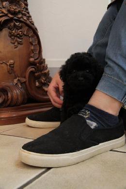 ★目がとっても大きいブラックちゃん★ 成犬時の予想サイズが2.4kg位のタイニーサイズ予想の女の子です。 差し毛やミスカラーはありません。 毛量豊富で、光沢のある綺麗なブラックカラーです。 この子の家系は、退色しないブラックの家系で、父犬のまあくんは、6歳ですが、一切の退色をしていません。両親共にブラックの子はブラックのままの家系で、高齢時に白髪としてポツポツ白髪が生えたとしても、退色しない国内では他に所有されているブリーダー様は居ないのではないでしょうか。アメリカに一人だけ持たれている方が居り、友人ブリーダーです。 フレンドリーな性格の子で、他の子犬達ととても仲良く遊んで生活しています♪ 目がクリクリしていて、マズルが詰まっており、顔のとても可愛い子で、ゴリラ顔ではありません。 健康診断とワクチンが済んでおり、すぐにお引き渡し可能です。 飼育の事やトリミングの事など、ご不安な点も、子犬の購入後の手続きの際に一つずつ丁寧にご指導いたしております。 ご安心して、お気軽にお問い合わせ下さいませ。 表示価格は現金特価となっております。 カードでお支払いのお客様は362,880円(税抜336,000円)でございます。 当社で飼育の際に実際に使用しているゲージやトイレなどの生活用品の一式がセットになって37,800円の飼育セットの御用意がございます。 犬種ごとに選択いただくゲージも違いますので、初めての方は、ワンちゃんの購入の際に、同時に飼育セットをお持ち帰りいただく事をオススメしております。 ワンちゃんも使い慣れているので、不安無く新しい生活がスタート出来ると思います。 |
