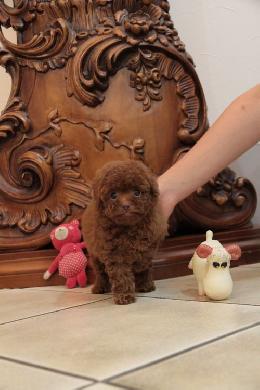 ★完全に小さいマイクロサイズの女の子★ 成犬時の予想サイズが1.2kg位のマイクロティーカップサイズの女の子です。 顔がとっても可愛くて、目がクリクリしていて大きく、マズルはビックリする位に猫の口元の様にドン詰まりです。 こちらの子は、とても可愛い子なのですが、鼻の色素が薄く、レバーな為(レバーと言ってもピンクでは無く、チョコレート色)通常価格よりお値段を引き下げております。月齢が浅いうちでの撮影となった為、まだこれから、少しずつ濃くなりますが、こげ茶色の鼻と想像頂ければと思います。 健康上や生活上には一切支障も無いのでご安心頂ければと思います。 この家系は、チビチビ家系でな為、予想より小さく収まってしまう可能性もございます。 性格は甘えん坊さんで人が大好きなのと、オモチャが意外と好きで、一人遊びがとても上手な子です。 人や犬に対してとても優しく接する事の出来る子です。 1回目のワクチン接種と健康診断が終わっており、すぐにお引き渡しが可能です。 飼育の事やトリミングの事など、ご不安な点も、子犬の購入後の手続きの際に一つずつ丁寧にご指導いたしております。 ご安心して、お気軽にお問い合わせ下さいませ。 表示価格は現金特価となっております。 カードでお支払いのお客様は430,920円(税抜399,000円)でございます。 当社で飼育の際に実際に使用しているゲージやトイレなどの生活用品の一式がセットになって37,800円の飼育セットの御用意がございます。 犬種ごとに選択いただくゲージも違いますので、初めての方は、ワンちゃんの購入の際に、同時に飼育セットをお持ち帰りいただく事をオススメしております。 ワンちゃんも使い慣れているので、不安無く新しい生活がスタート出来ると思います。 |