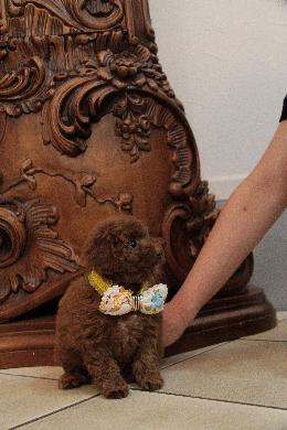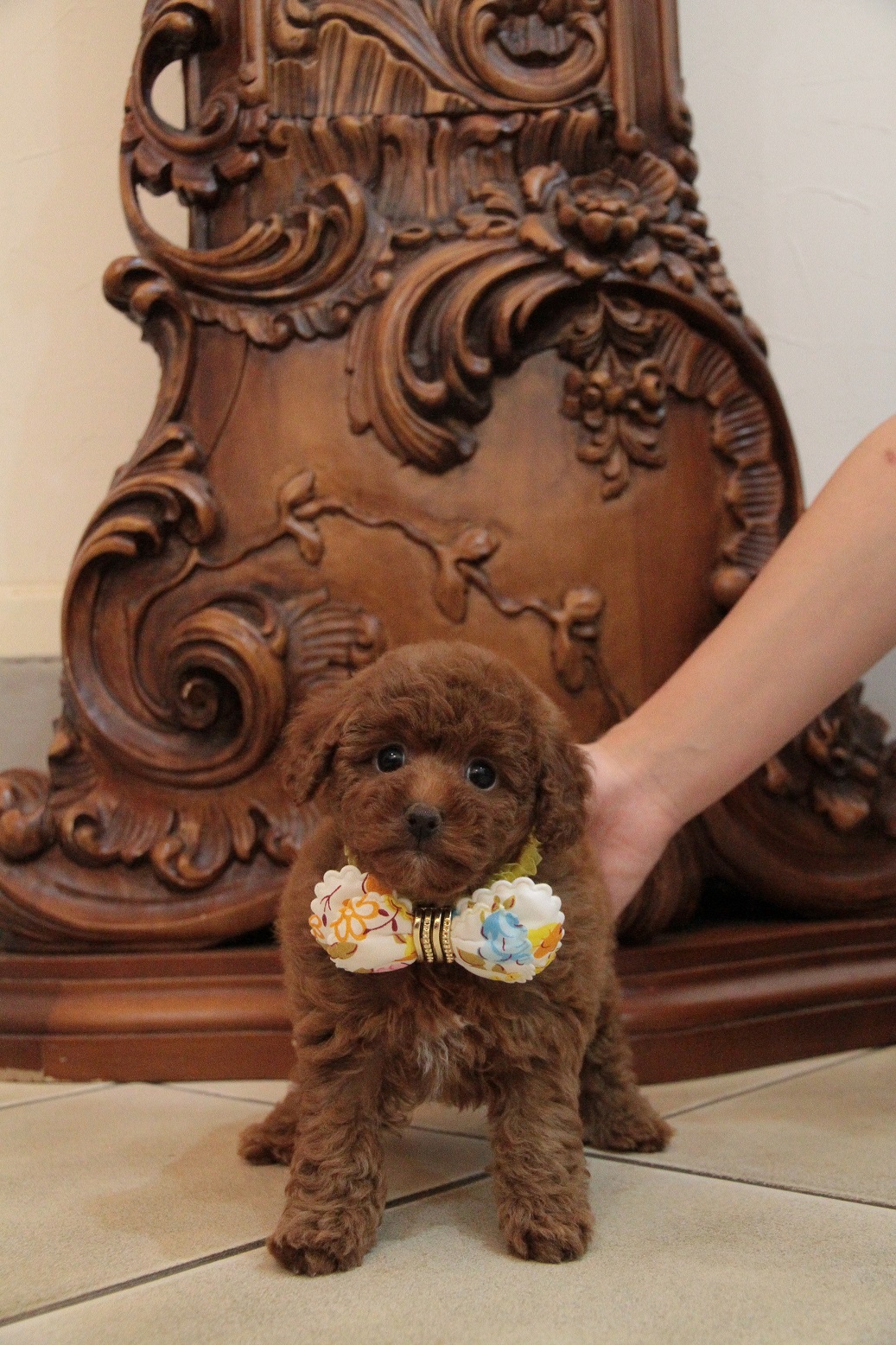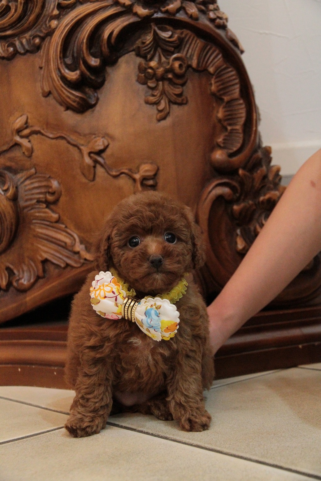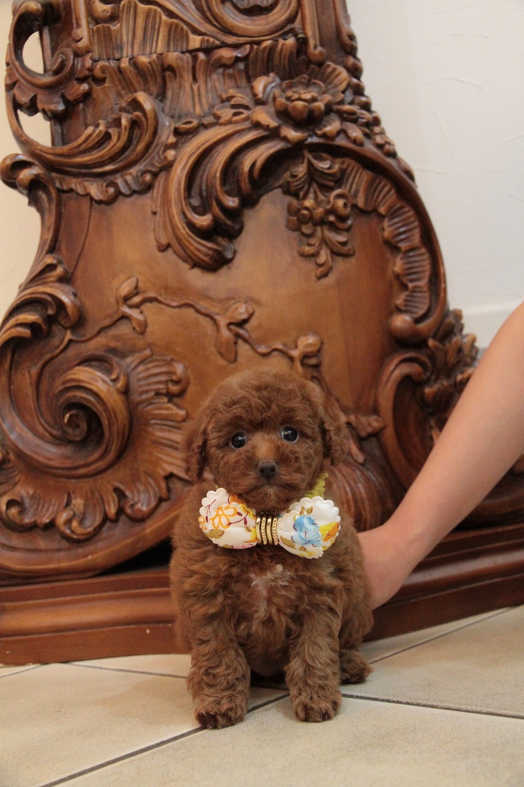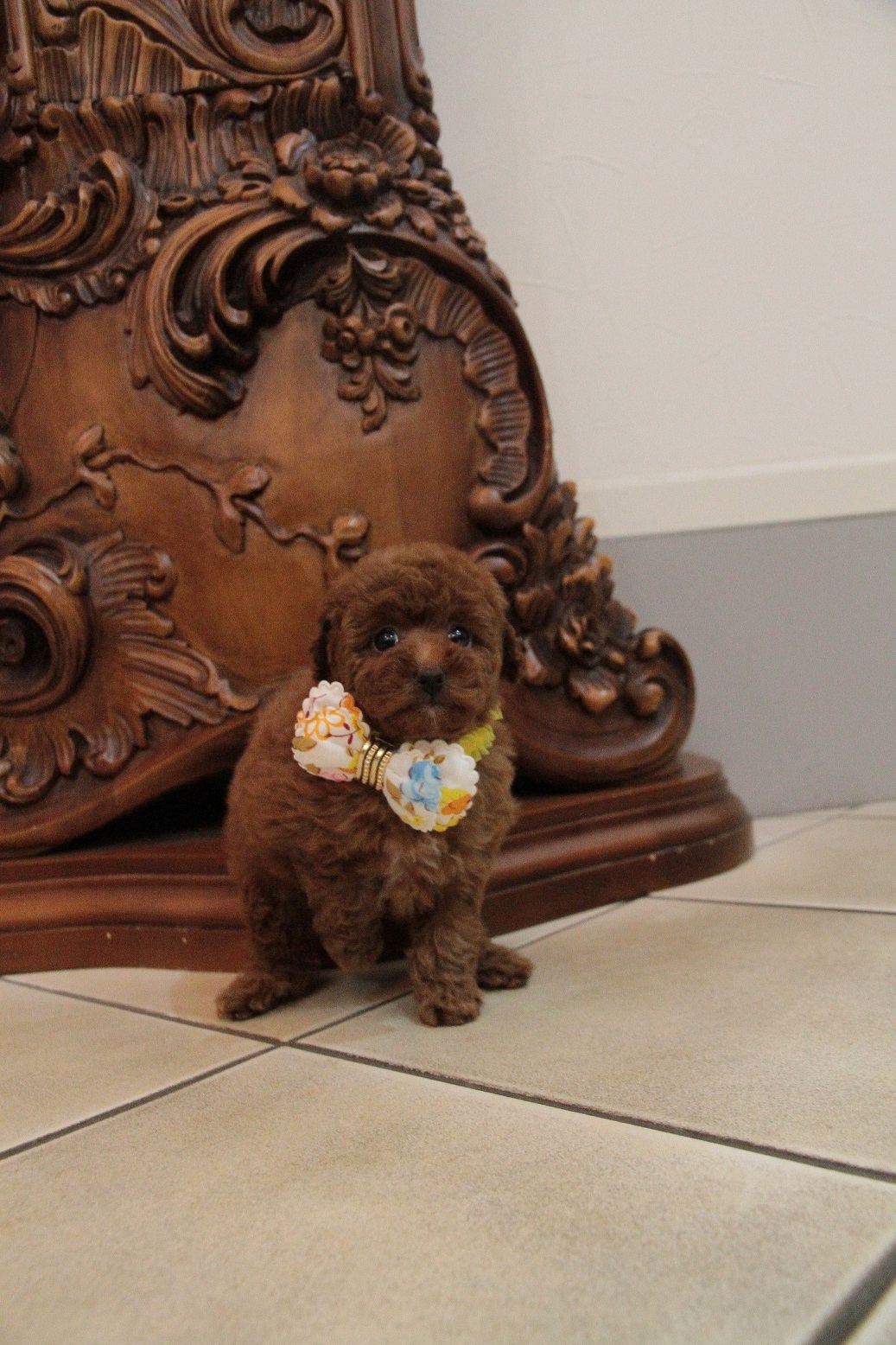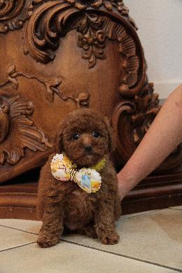 ★毛量抜群・ディープレッド・デカ目・小ぶり★ 成犬時の予想サイズが2.4kg位の小振りタイニーサイズタイプの女の子です。 色味は濃いディープレッドで、顔がハッキリ写る様に、カメラの明るさを明るくして撮影していますので、実物の方が濃いです。 胸と顎にミスカラーが入りましたので、その分価格を低く設定しておりますが、ミスカラー(ドッグショーに出られないというだけのもので、健康上の問題はありません。)以外は申し分の無いかなり良い犬質です。 毛量がとっても豊富なので、密度があり、 毛を掻き分けても地肌が出ない子です。 とっても目が大きくデカい子になります。 写真だと、目が強調されすぎて可愛く撮れていませんが、実物は目がクリクリでマズルの短い小さな子です。 1回目のワクチン接種と健康診断が終わっており、すぐにお引き渡しが可能です。 飼育の事やトリミングの事など、ご不安な点も、子犬の購入後の手続きの際に一つずつ丁寧にご指導いたしております。 ご安心して、お気軽にお問い合わせ下さいませ。 表示価格は現金特価となっております。 カードでお支払いのお客様は260,820円(税抜241,500円)でございます。 当社で飼育の際に実際に使用しているゲージやトイレなどの生活用品の一式がセットになって37,800円の飼育セットの御用意がございます。 犬種ごとに選択いただくゲージも違いますので、初めての方は、ワンちゃんの購入の際に、同時に飼育セットをお持ち帰りいただく事をオススメしております。 ワンちゃんも使い慣れているので、不安無く新しい生活がスタート出来ると思います。 |
