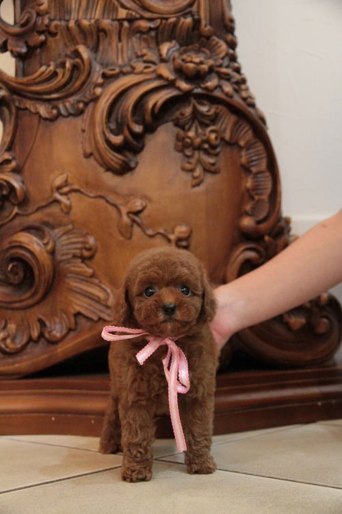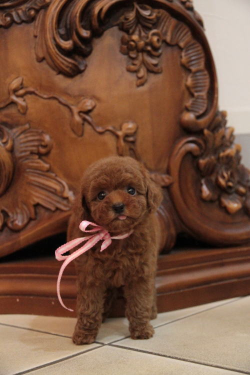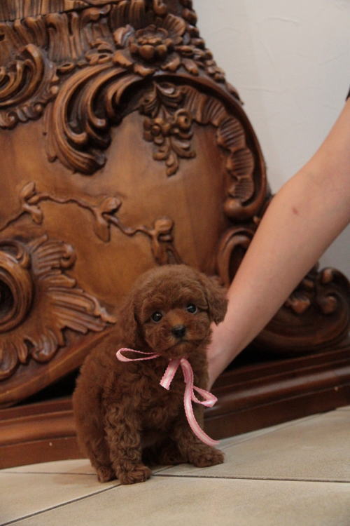 当社所有の犬は全頭PRA検査クリアです。キャリア犬の所有もございません。 ★ヤバいです!!可愛すぎます!!小さいです!!★ 成犬時の予想サイズが1.3kg位のティーカップサイズでコロコロしたタイプに仕上がりそうな子です。 顔が超絶可愛くて、目は真ん丸でクリックリ、マズルはビックリする位に詰まっています。 毛量がとっても豊富で、毛質はかなり良い柔らかな毛質をしています。 家系が、目が大きく丸い家系なのと、まだ瞼の皮膚に余裕がありますから、これから一か月かけて更にクリクリします。 目は生後20日近くまで少しずつ開いてくるものなのですが、凡そ生後90日程まで開きます。 人間が中学までは目が腫れぼったいのと同じです。少しずつ目もできていきます。 性格は、姉妹でとにかく人懐こい事。 抱っこが大好き。 ママ犬がとっても面倒見が良くて、お育ちがとても良い雰囲気で育っています。 1回目のワクチン接種と健康診断が終わっており、すぐにお引き渡しが可能です。 飼育の事やトリミングの事など、ご不安な点も、子犬の購入後の手続きの際に一つずつ丁寧にご指導いたしております。 ご安心して、お気軽にお問い合わせ下さいませ。 表示価格は現金特価となっております。 カードでお支払いのお客様は453,600円(税抜420,000円)でございます。 当社で飼育の際に実際に使用しているゲージやトイレなどの生活用品の一式がセットになって37,800円の飼育セットの御用意がございます。 犬種ごとに選択いただくゲージも違いますので、初めての方は、ワンちゃんの購入の際に、同時に飼育セットをお持ち帰りいただく事をオススメしております。 ワンちゃんも使い慣れているので、不安無く新しい生活がスタート出来ると思います。 |