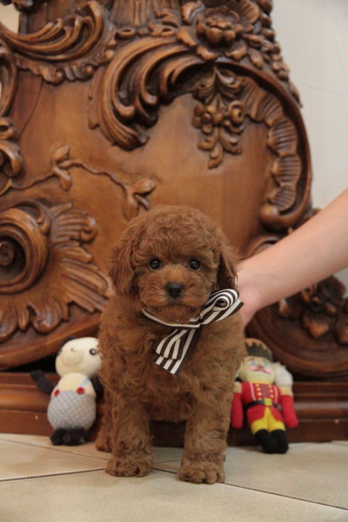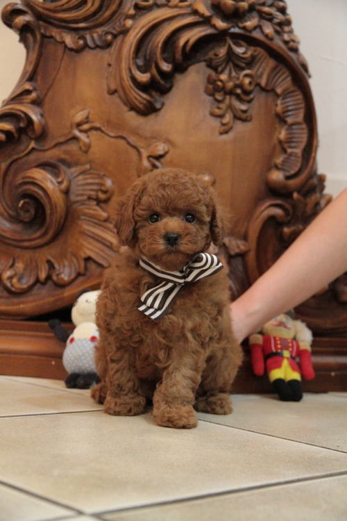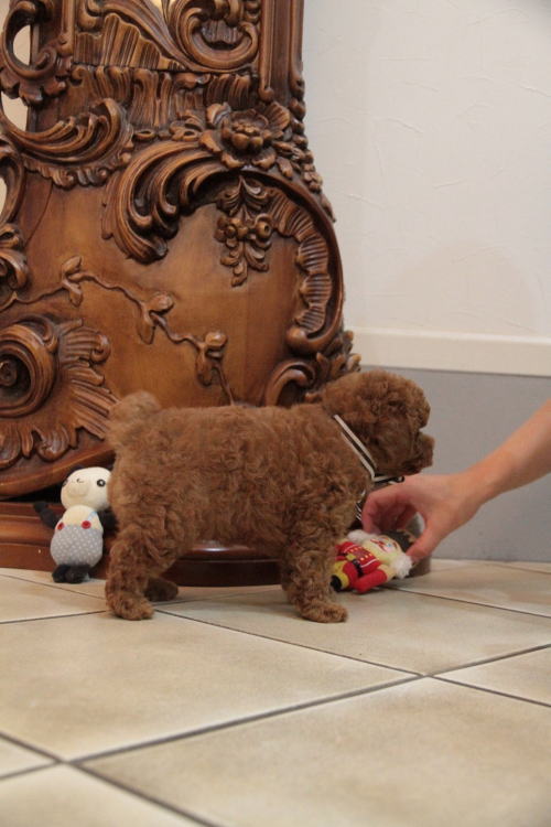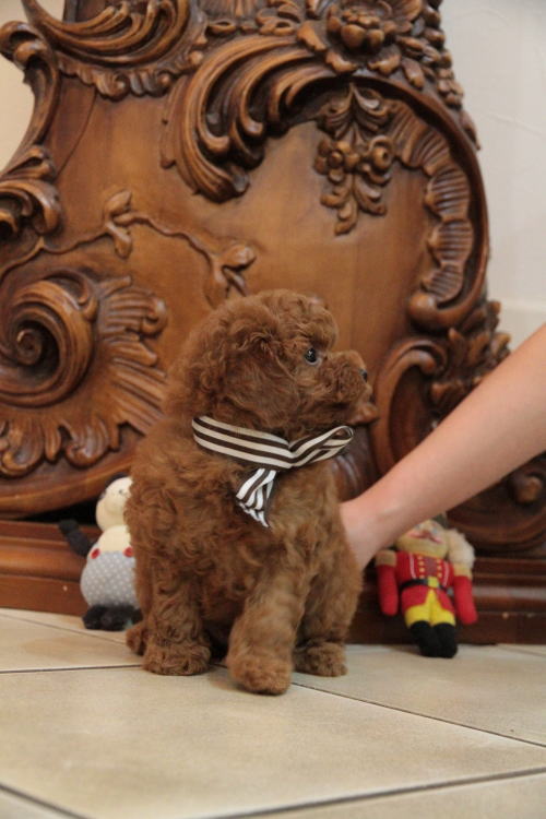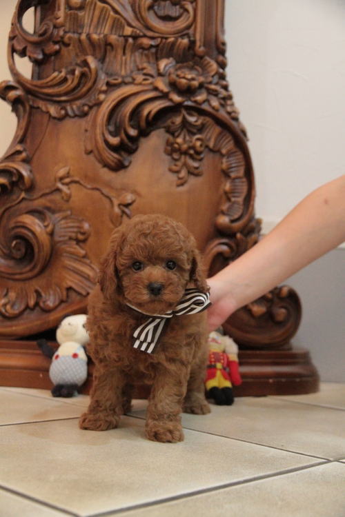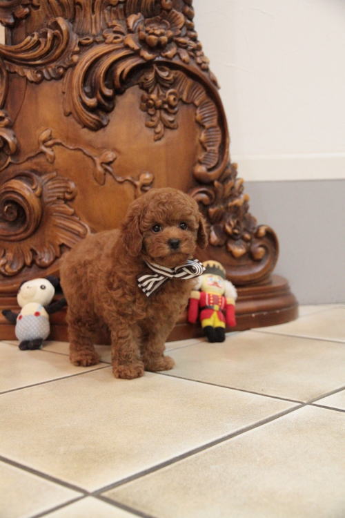 ★とっても温厚で可愛らしい男の子★ 成犬時の予想サイズが2.8kg位のタイニー~トイサイズを予想している男の子です。 毛量が抜群で、毛を掻き分けても地肌の見えないボリューム。 毛色は何とも言えない優しい雰囲気のレッドです。 性格は、温厚でおっとり、ゆったりとした性格で、穏やかなタイプに育っています。 1回目のワクチン接種と健康診断が終わっており、いつでもお引き渡しが可能です。 飼育の事やトリミングの事など、ご不安な点も、子犬の購入後の手続きの際に一つずつ丁寧にご指導いたしております。 ご安心して、お気軽にお問い合わせ下さいませ。 表示価格は現金特価となっております。 カードでお支払いのお客様は260,820円(税抜241,500円)でございます。 当社で飼育の際に実際に使用しているゲージやトイレなどの生活用品の一式がセットになって37,800円の飼育セットの御用意がございます。 犬種ごとに選択いただくゲージも違いますので、初めての方は、ワンちゃんの購入の際に、同時に飼育セットをお持ち帰りいただく事をオススメしております。 ワンちゃんも使い慣れているので、不安無く飼育を開始いただけると思います。 |