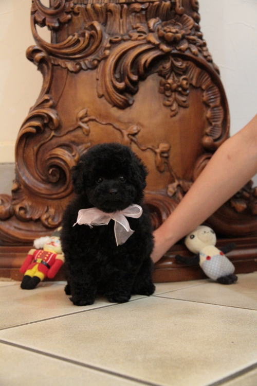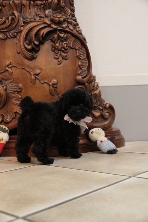 ★ティーカップサイズの退色しないブラックちゃん★ 成犬時の予想サイズが1.8kg位のティーカップサイズ予想の女の子です。 差し毛やミスカラーはありません。 毛量豊富で、光沢のある綺麗なブラックカラーです。 この子の家系は、退色しないブラックの家系で、父犬のまあくんは、6歳ですが、一切の退色をしていません。両親共にブラックの子はブラックのままの家系で、高齢時に白髪としてポツポツ白髪が生えたとしても、退色しない国内では他に所有されているブリーダー様は居ないのではないでしょうか。アメリカに一人だけ持たれている方が居り、友人ブリーダーです。 フレンドリーな性格の子で、他の子犬達ととても仲良く遊んで生活しています♪ 目がクリクリしていて、マズルが詰まっており、顔のとても可愛い子で、ゴリラ顔ではありません。 健康診断とワクチンが済んでおり、すぐにお引き渡し可能です。 飼育の事やトリミングの事など、ご不安な点も、子犬の購入後の手続きの際に一つずつ丁寧にご指導いたしております。 ご安心して、お気軽にお問い合わせ下さいませ。 表示価格は現金特価となっております。 カードでお支払いのお客様は317,520円(税抜294,000円)でございます。 当社で飼育の際に実際に使用しているゲージやトイレなどの生活用品の一式がセットになって37,800円の飼育セットの御用意がございます。 犬種ごとに選択いただくゲージも違いますので、初めての方は、ワンちゃんの購入の際に、同時に飼育セットをお持ち帰りいただく事をオススメしております。 ワンちゃんも使い慣れているので、不安無く新しい生活がスタート出来ると思います。 |