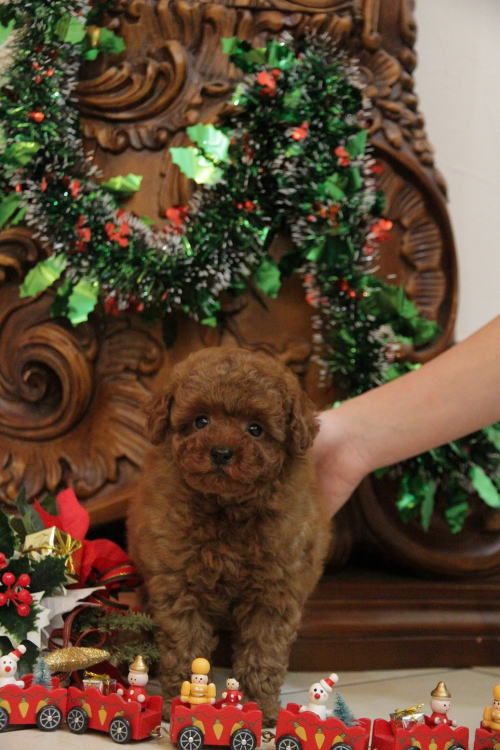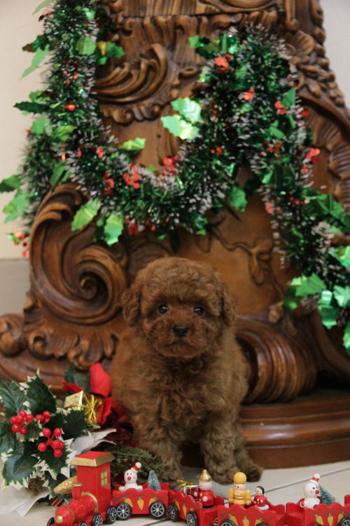 ★めちゃくちゃ可愛い男の子です★ 成犬時の予想サイズが2.3kg位のムクムクの小振りタイニーサイズを予想している男の子です。 欠点、ミスカラー無です!! 毛量が抜群で、毛を掻き分けても地肌の見えないボリューム。 毛色は濃いレンガ色のディープレッドです。 色素も濃く、鼻、アイライン、唇がすべて真っ黒です! 目がとっても丸く大きい子で、マズルは詰まっています!!! 性格は、温厚でおっとり、ゆったりとした性格で、穏やかなタイプに育っています。 1回目のワクチン接種と健康診断が終わっており、いつでもお引き渡しが可能です。 飼育の事やトリミングの事など、ご不安な点も、子犬の購入後の手続きの際に一つずつ丁寧にご指導いたしております。 ご安心して、お気軽にお問い合わせ下さいませ。 表示価格は現金特価となっております。 カードでお支払いのお客様は231,000円(税抜210,000円)でございます。 当社で飼育の際に実際に使用しているゲージやトイレなどの生活用品の一式がセットになって37,800円の飼育セットの御用意がございます。 犬種ごとに選択いただくゲージも違いますので、初めての方は、ワンちゃんの購入の際に、同時に飼育セットをお持ち帰りいただく事をオススメしております。 ワンちゃんも使い慣れているので、不安無く飼育を開始いただけると思います。 |