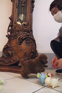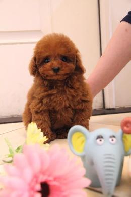 ★ギュッと詰まったコロコロのマイクロティーカップ★ 成犬時の予想サイズが1.2kg位のマイクロティーカップサイズでコロコロしたタイプに仕上がりそうな子です。 顔が超絶可愛くて、目は真ん丸でクリックリ、マズルはビックリする位に詰まっていて、猫の口元の様にドン詰まりです。 この家系は、チビチビ家系でな為、予想より小さく収まってしまう可能性もございます。 色味が濃いめのディープレッドで、写真撮影では、顔の表情を重視してカメラの明るさ設定をしていますので、実際には一段階以上濃い毛色でございます。 また、毛吹きは物凄く、毛量がとっても豊富で、毛質はかなり良い柔らかな毛質をしています。 性格がとにかくイイです!! 穏やかだけど、遊びはして、でも騒がしくなく、小さな動きでチョコチョコと・・・。( *´艸`) 1回目のワクチン接種と健康診断が終わっており、すぐにお引き渡しが可能です。 飼育の事やトリミングの事など、ご不安な点も、子犬の購入後の手続きの際に一つずつ丁寧にご指導いたしております。 ご安心して、お気軽にお問い合わせ下さいませ。 表示価格は現金特価となっております。 カードでお支払いのお客様は346,500円(税抜315,000円)でございます。 当社で飼育の際に実際に使用しているゲージやトイレなどの生活用品の一式がセットになって37,800円の飼育セットの御用意がございます。 犬種ごとに選択いただくゲージも違いますので、初めての方は、ワンちゃんの購入の際に、同時に飼育セットをお持ち帰りいただく事をオススメしております。 ワンちゃんも使い慣れているので、不安無く新しい生活がスタート出来ると思います。 |