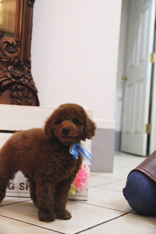 ★高い犬質!!クオリティの高い犬です!!★ 成犬時3kg位のトイサイズ予想の男の子です。 一人っ子で母乳たっぷりに育ちましたので、予想より小さく収まってしまう可能性もあります。 毛量が抜群で、毛を掻き分けても地肌の見えないボリューム。 毛色は濃いレンガ色のディープレッドです。 性格は、サイズとは違い、温厚でおっとり、ゆったりとした性格で、穏やかなタイプに育っています。 完全に甘えん坊のべったりさんです♪ 犬質がかなり高いので、一人でブリーディングを営んでいて、小さな種雄だと交配が大変だと思いますので、ショーチャレンジや種雄、お婿さんとしての候補としてもオススメです!! 1回目のワクチン接種と健康診断が終わっており、いつでもお引き渡しが可能です。 飼育の事やトリミングの事など、ご不安な点も、子犬の購入後の手続きの際に一つずつ丁寧にご指導いたしております。 ご安心して、お気軽にお問い合わせ下さいませ。 表示価格は現金特価となっております。 カードでお支払いのお客様は231,000円(税抜210,000円)でございます。 当社で飼育の際に実際に使用しているゲージやトイレなどの生活用品の一式がセットになって37,800円の飼育セットの御用意がございます。 犬種ごとに選択いただくゲージも違いますので、初めての方は、ワンちゃんの購入の際に、同時に飼育セットをお持ち帰りいただく事をオススメしております。 ワンちゃんも使い慣れているので、不安無く飼育を開始いただけると思います。 |