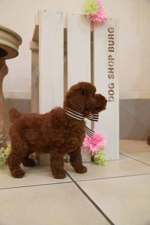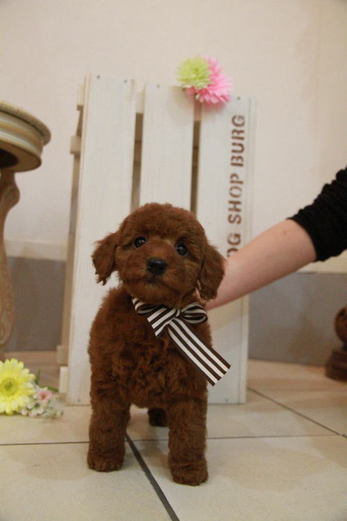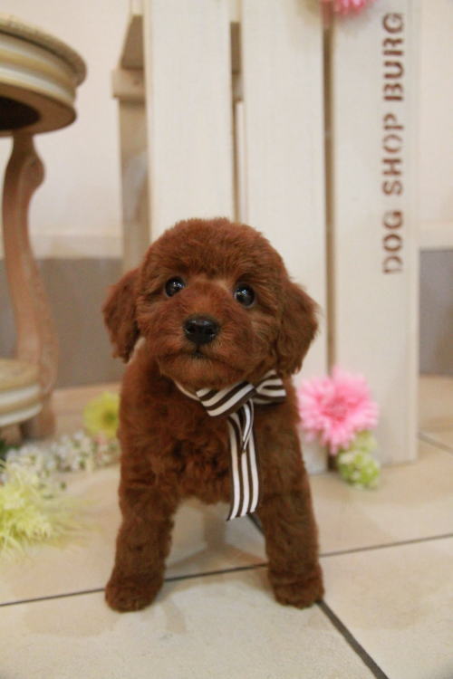 ★毛量豊富で可愛いディープレッドちゃん★ 実物の色味はかなり濃いレッドです(o^―^o) 成犬時の予想サイズ2.8kg位のタイニーサイズ後半タイプで抱っこした時に丁度良いサイズ感の女の子です。 目がクリックリで丸く大きく、顔が全体的にかなり可愛くて、毛量、顔のパーツの配置など、とにかく完璧です!! 毛色はディープレッドで、毛量がかなりあるので、トリミングスタイルの楽しめる子です。 犬の質も良く、血統も良く、顔が可愛く、癒し系な女の子です。 1回目のワクチン接種と健康診断が終わっており、すぐにお引き渡しが可能です。 飼育の事やトリミングの事など、ご不安な点も、子犬の購入後の手続きの際に一つずつ丁寧にご指導いたしております。 ご安心して、お気軽にお問い合わせ下さいませ。 表示価格は現金特価となっております。 カードでお支払いのお客様は404,250円(税抜367,500円)でございます。 当社で飼育の際に実際に使用しているゲージやトイレなどの生活用品の一式がセットになって37,800円の飼育セットの御用意がございます。 犬種ごとに選択いただくゲージも違いますので、初めての方は、ワンちゃんの購入の際に、同時に飼育セットをお持ち帰りいただく事をオススメしております。 ワンちゃんも使い慣れているので、不安無く新しい生活がスタート出来ると思います。 |