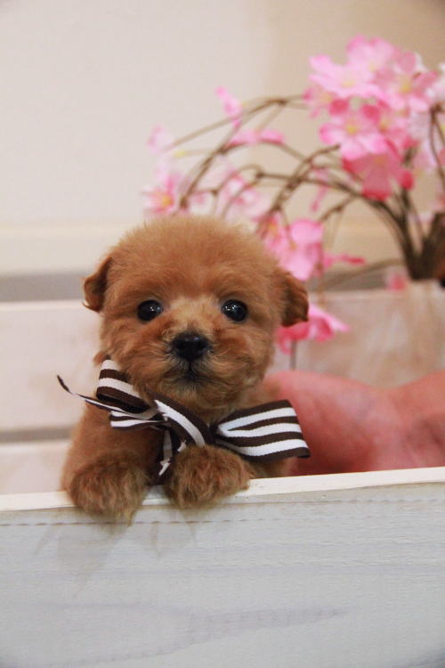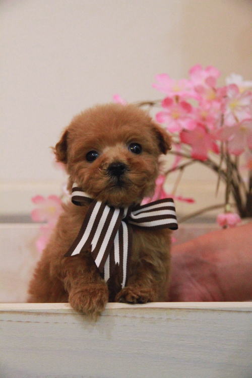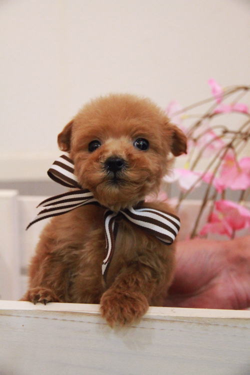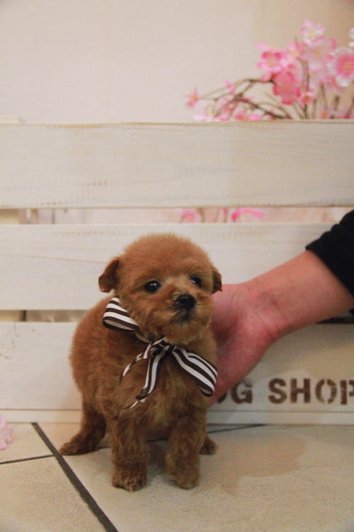 ★コロコロのマイクロティーカップ★ 成犬時の予想サイズが1.2kg位のマイクロティーカップサイズでコロコロしたタイプに仕上がりそうな子です。 顔が超絶可愛くて、目は真ん丸でクリックリ、マズルはビックリする位に詰まっていて、猫の口元の様にドン詰まりです。 この家系は、チビチビ家系でな為、予想より小さく収まってしまう可能性もございます。 性格がとにかくイイです!! 穏やかだけど、遊びはして、でも騒がしくなく、小さな動きでチョコチョコと・・・。( *´艸`) 1回目のワクチン接種と健康診断が終わっており、すぐにお引き渡しが可能です。 飼育の事やトリミングの事など、ご不安な点も、子犬の購入後の手続きの際に一つずつ丁寧にご指導いたしております。 ご安心して、お気軽にお問い合わせ下さいませ。 表示価格は現金特価となっております。 カードでお支払いのお客様は462,500円(税抜420 ,000円)でございます。 当社で飼育の際に実際に使用しているゲージやトイレなどの生活用品の一式がセットになって37,800円の飼育セットの御用意がございます。 犬種ごとに選択いただくゲージも違いますので、初めての方は、ワンちゃんの購入の際に、同時に飼育セットをお持ち帰りいただく事をオススメしております。 ワンちゃんも使い慣れているので、不安無く新しい生活がスタート出来ると思います。 |