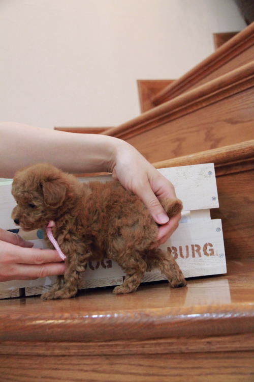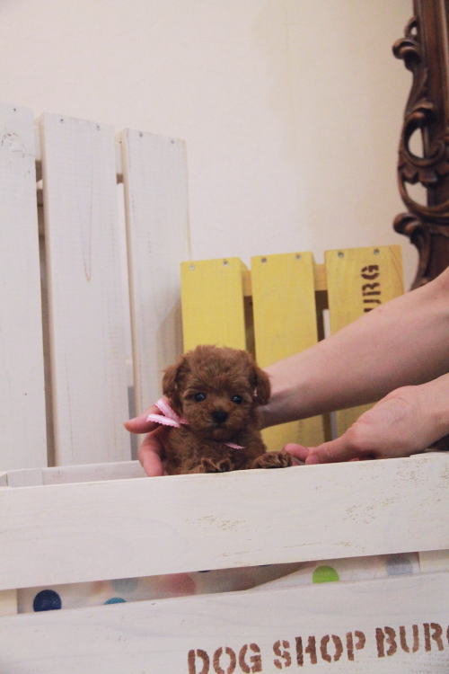 ★ヤバいです!!可愛すぎます!!小さいです!!★ 両親PRA検査クリアです。 成犬時の予想サイズが1.2kg位のマイクロティーカップサイズでとても小さく仕上がりそうな子です。 顔が超絶可愛くて、目は真ん丸でクリックリ、マズルはビックリする位に詰まっています。 毛量がとっても豊富で、毛質はかなり良い柔らかな毛質をしています。 家系が、目が大きく丸い家系なのと、まだ瞼の皮膚に余裕がありますから、これから一か月かけて更にクリクリします。 目は生後20日近くまで少しずつ開いてくるものなのですが、凡そ生後90日程まで開きます。 人間が中学までは目が腫れぼったいのと同じです。少しずつ目もできていきます。 ママ犬がとっても面倒見が良くて、お育ちがとても良い雰囲気で育っています。 温厚で穏やかな兄妹犬達です!!! 1回目のワクチン接種と健康診断が終わっており、すぐにお引き渡しが可能です。 飼育の事やトリミングの事など、ご不安な点も、子犬の購入後の手続きの際に一つずつ丁寧にご指導いたしております。 ご安心して、お気軽にお問い合わせ下さいませ。 表示価格は現金特価となっております。 カードでお支払いのお客様は924,000円(税抜840,000円)でございます。 当社で飼育の際に実際に使用しているゲージやトイレなどの生活用品の一式がセットになって37,800円の飼育セットの御用意がございます。 犬種ごとに選択いただくゲージも違いますので、初めての方は、ワンちゃんの購入の際に、同時に飼育セットをお持ち帰りいただく事をオススメしております。 ワンちゃんも使い慣れているので、不安無く新しい生活がスタート出来ると思います。 |