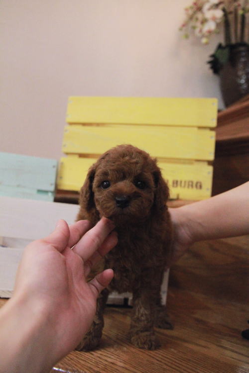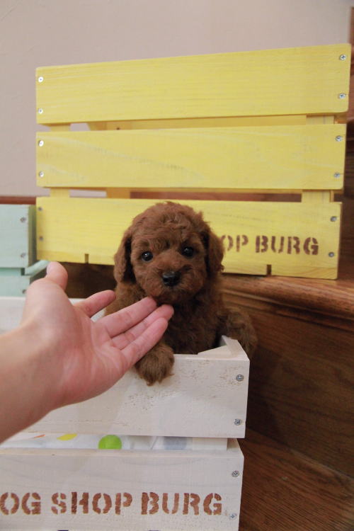 ★ディープレッド・トイサイズ★ 成犬時の予想サイズが3kg位のトイサイズを予想している男の子です。 毛量が抜群で、毛を掻き分けても地肌の見えないボリューム。 毛色は濃いレンガ色のかなり濃いディープレッドです。 中・大型犬との多頭飼育を希望される方や、小型犬飼育初心者、小さなお子様が居るご家庭、元気一杯のお子様が居る家庭、ランやアウトドアが好きな家庭、ウォーキングが趣味の方に最適です!! しっかりしていて、サイズとしても骨折などの心配が無い事、低血糖の心配が無い事などがございます。 性格は、サイズとは違い、温厚でおっとり、ゆったりとした性格で、穏やかなタイプに育っています。 犬質がかなり高いので、一人でブリーディングを営んでいて、ショーチャレンジや種雄、お婿さんとしての候補としてもオススメです!! 1回目のワクチン接種と健康診断が終わっており、6月14日よりお引渡しが可能です。 飼育の事やトリミングの事など、ご不安な点も、子犬の購入後の手続きの際に一つずつ丁寧にご指導いたしております。 ご安心して、お気軽にお問い合わせ下さいませ。 表示価格は現金特価となっております。 カードでお支払いのお客様は462,000円(税抜420,000円)でございます。 当社で飼育の際に実際に使用しているゲージやトイレなどの生活用品の一式がセットになって37,800円の飼育セットの御用意がございます。 犬種ごとに選択いただくゲージも違いますので、初めての方は、ワンちゃんの購入の際に、同時に飼育セットをお持ち帰りいただく事をオススメしております。 ワンちゃんも使い慣れているので、不安無く飼育を開始いただけると思います。 |
