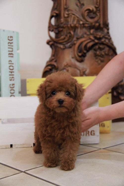 ★ディープレッドのマイクロティーカップサイズ★ 両親犬PRA検査クリア!! 成犬時の予想サイズが1.2kg位のマイクロティーカップサイズに仕上がりそうな予想です。 顔が丸顔でとっても可愛くて、目がクリクリしていて大きく、マズルがとても詰まっている子です。 体型も真ん丸くズングリムックリとしていて可愛らしい形をしています。 毛色がかなり濃いディープレッドで、毛量は素晴らしく抜群にあります。 姉妹でとても仲良く、おもちゃなどで上手に遊んでいます。 1回目のワクチン接種と健康診断が終わっておりますので、すぐにお引き渡しが可能です。 飼育の事やトリミングの事など、ご不安な点も、子犬の購入後の手続きの際に一つずつ丁寧にご指導いたしております。 ご安心して、お気軽にお問い合わせ下さいませ。 表示価格は現金特価となっております。 カードでお支払いのお客様は577,500円(税抜525,000円)でございます。 当社で飼育の際に実際に使用しているゲージやトイレなどの生活用品の一式がセットになって37,800円の飼育セットの御用意がございます。 犬種ごとに選択いただくゲージも違いますので、初めての方は、ワンちゃんの購入の際に、同時に飼育セットをお持ち帰りいただく事をオススメしております。 ワンちゃんも使い慣れているので、不安無く新しい生活がスタート出来ると思います。 |