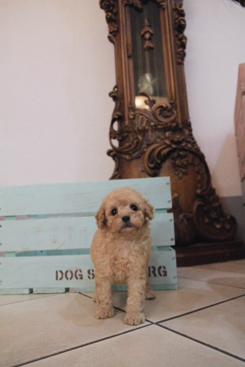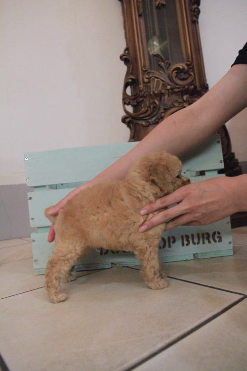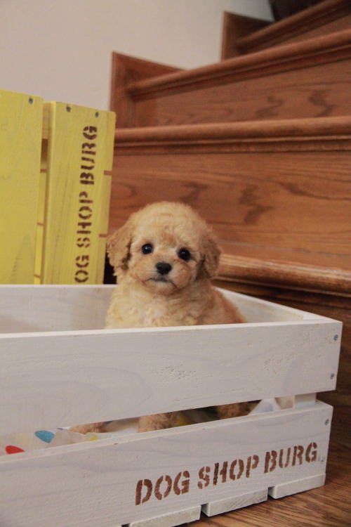 ★めちゃくちゃ可愛い顔のクリームくん★ 両親PRA検査クリア!! 成犬時の予想サイズが2.8kgのタイニーサイズタイプの男の子です。 毛色は数が少ないクリーム色で、目が大きく丸く真ん丸なので、女の子に見えるほど可愛らしい顔つきをしています♪ 性格がとても良く、現在同じくらいの月齢の子達5匹でとても仲良く穏やかに遊んで過ごしています。 ワクチン、健康診断が住んでおり、いつでもお引渡しが可能です。 飼育の事やトリミングの事など、ご不安な点も、子犬の購入後の手続きの際に一つずつ丁寧にご指導いたしております。 ご安心して、お気軽にお問い合わせ下さいませ。 表示価格は現金特価となっております。 カードでお支払いのお客様は404,250円(税抜367,500円)でございます。 当社で飼育の際に実際に使用しているゲージやトイレなどの生活用品の一式がセットになって37,800円の飼育セットの御用意がございます。 犬種ごとに選択いただくゲージも違いますので、初めての方は、ワンちゃんの購入の際に、同時に飼育セットをお持ち帰りいただく事をオススメしております。 ワンちゃんも使い慣れているので、不安無く新しい生活がスタート出来ると思います。 |