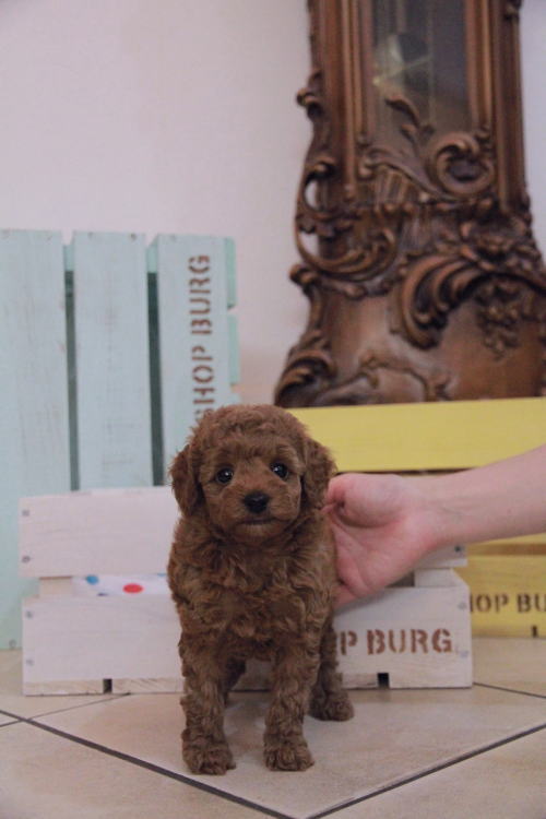 ★タイニーサイズのイケメンBoy★ 両親PRA検査クリアです。 成犬時の予想サイズが2.8kg位のタイニーサイズタイプの男の子です。 お顔がかなり可愛い子でイケメンです♪ 3匹兄弟はとっても仲良し。 どの子も温厚でとても人懐こく、犬と遊んだり、オモチャで一人遊びをしてくれるようなとても楽に子育てが出来る子で助かっています。 顎に差し毛が入りましたので、その分価格を下げて掲載しております。 1回目のワクチン接種と健康診断が終わっており、いつでもお引き渡しが可能です。 飼育の事やトリミングの事など、ご不安な点も、子犬の購入後の手続きの際に一つずつ丁寧にご指導いたしております。 ご安心して、お気軽にお問い合わせ下さいませ。 表示価格は現金特価となっております。 カードでお支払いのお客様は462,000円(税抜420,000円)でございます。 当社で飼育の際に実際に使用しているゲージやトイレなどの生活用品の一式がセットになって37,800円の飼育セットの御用意がございます。 犬種ごとに選択いただくゲージも違いますので、初めての方は、ワンちゃんの購入の際に、同時に飼育セットをお持ち帰りいただく事をオススメしております。 ワンちゃんも使い慣れているので、不安無く新しい生活がスタート出来ると思います。 |