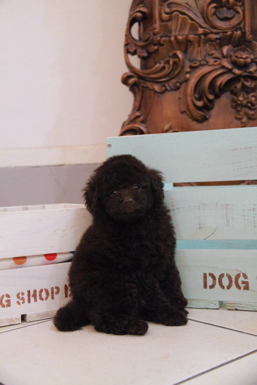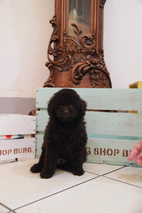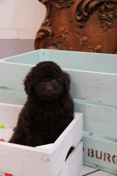 ★お目目クリクリのブラウンくん★ PRA発症しません。 成犬時の予想サイズが2.6kg位のタイニーサイズ予想の男の子です。 目がクリックリで大きく可愛らしい瞳をしています!!! 差し毛やミスカラーはありません。 フレンドリーな性格の子で、我が家の子供達にとてもよく懐いて、子供が好きな様子です。 オモチャなどにも興味がある子です。 毛量が抜群なので、カットもとても楽しめるタイプです♪ 健康診断とワクチンが済んでおり、すぐにお引き渡し可能です。 飼育の事やトリミングの事など、ご不安な点も、子犬の購入後の手続きの際に一つずつ丁寧にご指導いたしております。 ご安心して、お気軽にお問い合わせ下さいませ。 表示価格は現金特価となっております。 カードでお支払いのお客様は346,500円(税抜315 ,000円)でございます。 当社で飼育の際に実際に使用しているゲージやトイレなどの生活用品の一式がセットになって37,800円の飼育セットの御用意がございます。 犬種ごとに選択いただくゲージも違いますので、初めての方は、ワンちゃんの購入の際に、同時に飼育セットをお持ち帰りいただく事をオススメしております。 ワンちゃんも使い慣れているので、不安無く新しい生活がスタート出来ると思います。 |