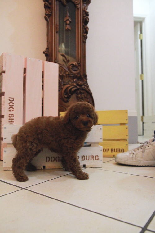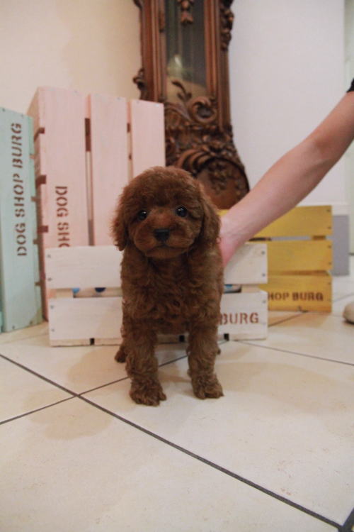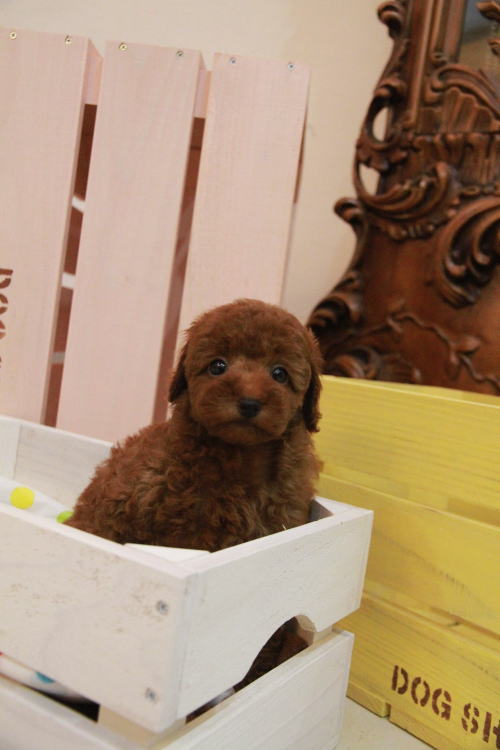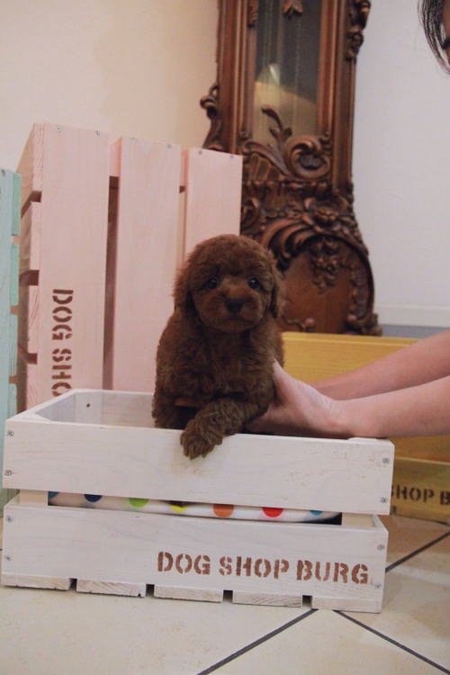 ★サイズが大きくしっかりした男の子★ 成犬時の予想サイズが4kg位のとトイサイズの男の子です。 ミニチュアプードルまではいかないけど、トイプードルとしては大きめな子になります。 とてもお利口さんでトイレは完璧!! 性格は穏やかで優しい子に育っています。 毛量がかなーーーり豊富で、密度があり、 毛を掻き分けても地肌が出ない子です。 綿菓子みたいです♪ 毛色が濃いめでディープレッドで色素がバッチリな子になります!!! 1回目のワクチン接種と健康診断が終わっており、すぐにお引き渡しが可能です。 飼育の事やトリミングの事など、ご不安な点も、子犬の購入後の手続きの際に一つずつ丁寧にご指導いたしております。 ご安心して、お気軽にお問い合わせ下さいませ。 表示価格は現金特価となっております。 カードでお支払いのお客様は346,500円(税抜315,000円)でございます。 当社で飼育の際に実際に使用しているゲージやトイレなどの生活用品の一式がセットになって37,800円の飼育セットの御用意がございます。 犬種ごとに選択いただくゲージも違いますので、初めての方は、ワンちゃんの購入の際に、同時に飼育セットをお持ち帰りいただく事をオススメしております。 ワンちゃんも使い慣れているので、不安無く新しい生活がスタート出来ると思います。 |