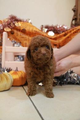 ★まん丸な目が愛らしいティーカップちゃん★ 家系が全てPRAクリアです!! 成犬時の予想サイズが1.7kg位を予想しているティーカップサイズ予想の子です。 こちらの子は、とても可愛い子なのですが、鼻の色素が薄い為、通常価格よりお値段を引き下げております。月齢が浅いうちでの撮影となった為、まだこれから、もう少し濃くなります。 健康上や生活上には一切支障も無いのでご安心頂ければと思います。 顔は丸顔で、目は丸く大きく、マズルがドン詰まりで、顔はかなり可愛い子なので、鼻のお色だけが勿体ない!! 性格の優しい子で、おもちゃで遊ぶ時など、他の子犬達ととても上手に遊んでいます。 毛色がとても濃いディープレッドで、毛量抜群です!! 1回目のワクチン接種と健康診断が終わっており、すぐに引き渡しが可能です。 飼育の事やトリミングの事など、ご不安な点も、子犬の購入後の手続きの際に一つずつ丁寧にご指導いたしております。 ご安心して、お気軽にお問い合わせ下さいませ。 表示価格は現金特価となっております。 カードでお支払いのお客様は404,250円(税抜367,500円)でございます。 当社で飼育の際に実際に使用しているゲージやトイレなどの生活用品の一式がセットになって37,800円の飼育セットの御用意がございます。 犬種ごとに選択いただくゲージも違いますので、初めての方は、ワンちゃんの購入の際に、同時に飼育セットをお持ち帰りいただく事をオススメしております。 ワンちゃんも使い慣れているので、不安無く新しい生活がスタート出来ると思います。 |