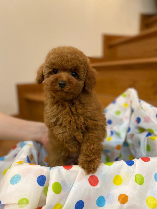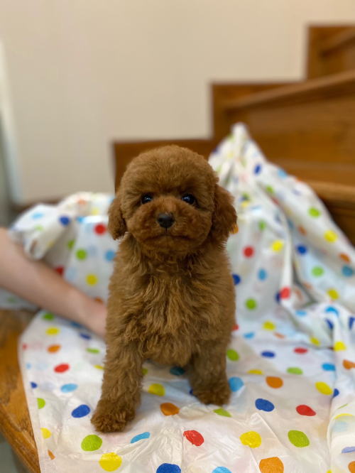 ★毛量豊富で可愛いディープレッドちゃん★ 実物の色味はかなり濃いレッドです(o^―^o) 成犬時の予想サイズ2.6kg位のタイニーサイズタイプの女の子です。 目がクリックリで丸く大きく、顔が全体的にかなり可愛くて、毛量、顔のパーツの配置など、とにかく完璧です!! 毛色はディープレッドで、毛量がかなりあるので、トリミングスタイルの楽しめる子です。 3姉妹+1男で生まれ、4匹とても仲良しです♪ 一番大きいサイズの女の子は当社で残しています。 兄妹を一緒に飼育しませんか?(o^―^o) 1回目のワクチン接種と健康診断が終わっており、すぐにお引き渡しが可能です。 飼育の事やトリミングの事など、ご不安な点も、子犬の購入後の手続きの際に一つずつ丁寧にご指導いたしております。 ご安心して、お気軽にお問い合わせ下さいませ。 表示価格は現金特価となっております。 カードでお支払いのお客様は462,000円(税抜420,000円)でございます。 当社で飼育の際に実際に使用しているゲージやトイレなどの生活用品の一式がセットになって37,800円の飼育セットの御用意がございます。 犬種ごとに選択いただくゲージも違いますので、初めての方は、ワンちゃんの購入の際に、同時に飼育セットをお持ち帰りいただく事をオススメしております。 ワンちゃんも使い慣れているので、不安無く新しい生活がスタート出来ると思います。 |