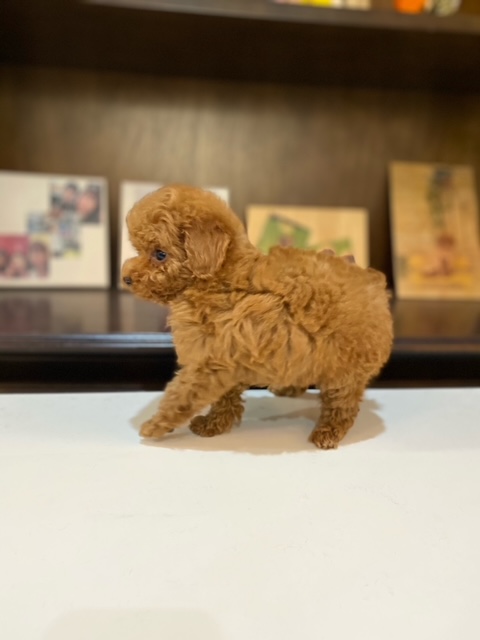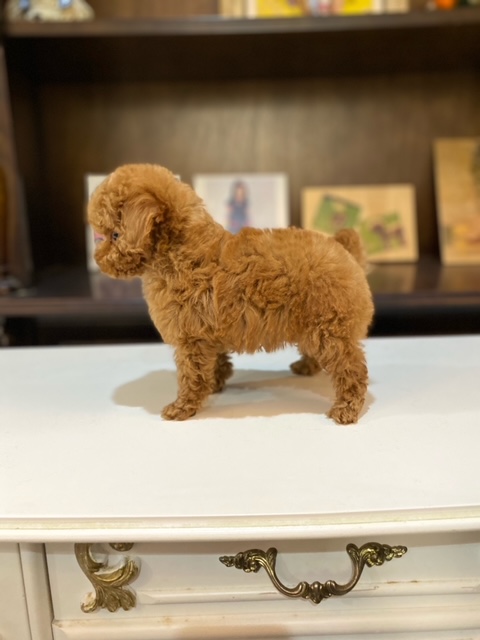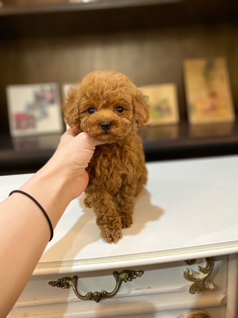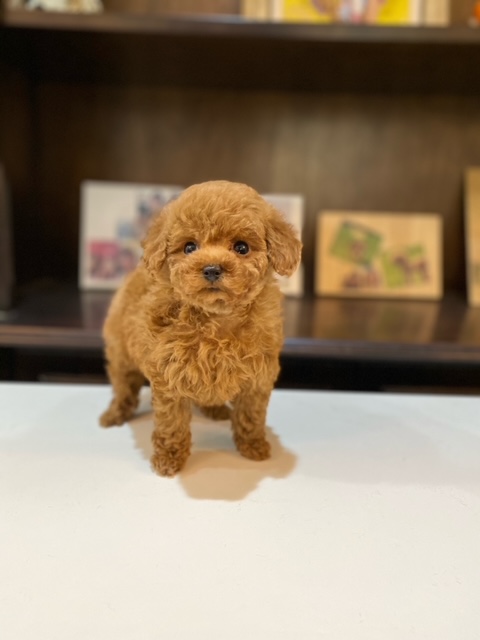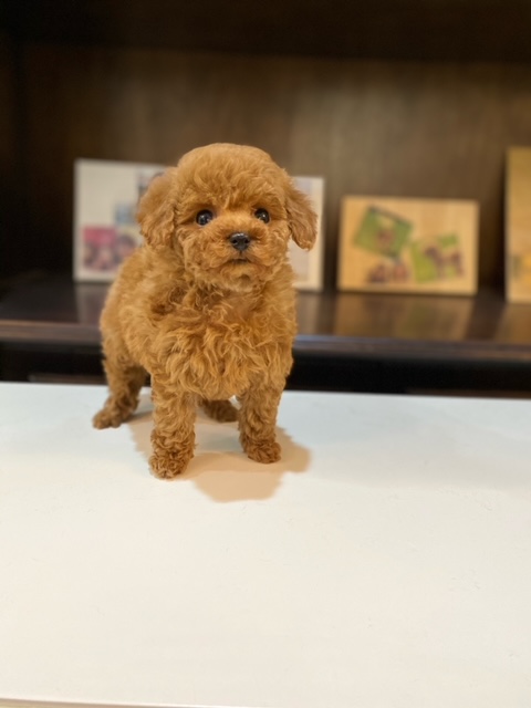 ★ギュッと詰まったコロコロのティーカップ君★ 色味は写真よりぜんぜん濃いです!!! 成犬時の予想サイズが1.2kg位のティーカップサイズタイプに仕上がりそうな子です。 顔が超絶可愛くて、目は真ん丸でクリックリ、マズルはビックリする位に詰まっていて、猫の口元の様にドン詰まりです。 この家系は、チビチビ家系でな為、予想より小さく収まってしまう可能性もございます。 色味はとても綺麗なレッドで、写真撮影では、顔の表情を重視してカメラの明るさ設定をしていますので、実際には一段階以上濃い毛色でございます。 また、毛吹きは物凄く、毛量がとっても豊富で、毛質はかなり良い柔らかな毛質をしています。 性格がとにかくイイです!! 穏やかだけど、遊びはして、でも騒がしくなく、小さな動きでチョコチョコと・・・。( *´艸`) 1回目のワクチン接種と健康診断が終わっており、すぐにお引き渡しが可能です。 飼育の事やトリミングの事など、ご不安な点も、子犬の購入後の手続きの際に一つずつ丁寧にご指導いたしております。 ご安心して、お気軽にお問い合わせ下さいませ。 表示価格は現金特価となっております。 カードでお支払いのお客様は519,750円(税抜472,500円)でございます。 当社で飼育の際に実際に使用しているゲージやトイレなどの生活用品の一式がセットになって37,800円の飼育セットの御用意がございます。 犬種ごとに選択いただくゲージも違いますので、初めての方は、ワンちゃんの購入の際に、同時に飼育セットをお持ち帰りいただく事をオススメしております。 ワンちゃんも使い慣れているので、不安無く新しい生活がスタート出来ると思います。 |