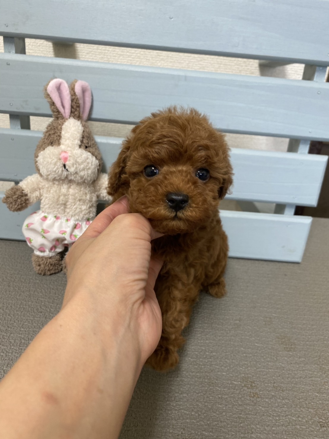 ★サイズの小さな美少年★ 成犬時の予想サイズが2.2kg位のタイニーサイズタイプの男の子です。 とっても甘えん坊で優しく、柔らかい性格に穏やかに成長しています♪ 毛量がとても豊富で、色がとても濃く、深みのあるディープレッドです。 お写真では、顔写りをメインに明るさ調整で明るめに撮影しております。 目が真ん丸で大きいので、女の子のようなお顔をしています。 胸に多少の差し毛があるので、その分、お値段を下げております。 お支払い方法は現金決済のみとなります。 1回目のワクチン接種と健康診断が終わっており、3月13日よりお引き渡しが可能です。 飼育の事やトリミングの事など、ご不安な点も、子犬の購入後の手続きの際に一つずつ丁寧にご指導いたしております。 ご安心して、お気軽にお問い合わせ下さいませ。 |