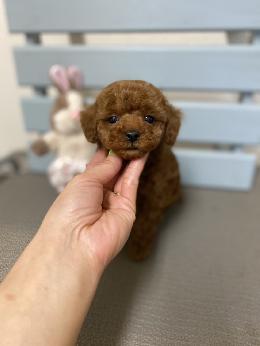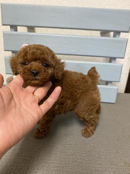 ★ギュギュギュッと詰まった男の子★ 成犬時の予想サイズが1.6kg位のティーカップサイズタイプに仕上がりそうな子です。 顔がとっても可愛くて、目がクリクリしていて大きく、マズルはビックリする位に猫の口元の様にドン詰まりです。 この家系は、チビチビ家系でな為、予想より小さく収まってしまう可能性もございます。 色味が濃いめのレッドで、写真撮影では、顔の表情を重視してカメラの明るさ設定をしていますので、実際には一段階以上濃い毛色でございます。 また、毛吹きは物凄く、毛量がとっても豊富で、毛質はかなり良い柔らかな毛質をしています。 胸に差し毛が入りましたので、その分、お値段を引いております。 性格は甘えん坊さんで人が大好きな子です。 まだ離乳したばかりで噛み合わせが1.5mm程アンダーショットなので、その分、若干ですがお値段を下げておりますが、月齢が浅いうちでの撮影となった為、まだこれからドライフードを食べていけば噛み合わせもしっかりしてきます。 噛み合わせについては毎回ご説明しておりますが、犬は、横たわるママ犬のお乳を首が座っていない赤ちゃんが飲みやすいように、編まれた時には全員アンダーで生まれますが、お乳から離れますと、少しずつ上顎の成長が促されます。 人間の子供の下顎の成長も5年生から始まって18歳までに発達するのと似ていますネ。 だから子供は歯が大人の歯に生えかわって、下顎が最後に仕上がるので、小学高学年から中学までに下顎がかなり小さい状態の子が多く居ますよね。成長の遅いタイプの子は特にそんな感じです。 もし万が一、乳歯で正常でも、大人の歯に生えかわって噛み合わせがアンダーだとしても、犬は「イーーーーッ」と歯を出したり、笑う事は無いので、分からないですから安心して下さいネ。 健康への影響も勿論ありませんので。 でも、基本的に生後60日には普通になるので、お買い得なティーカップくんです!!! お支払い方法は現金決済となります。 1回目のワクチン接種と健康診断が終わっており、5月13日よりお引き渡しが可能です。 飼育の事やトリミングの事など、ご不安な点も、子犬の購入後の手続きの際に一つずつ丁寧にご指導いたしております。 ご安心して、お気軽にお問い合わせ下さいませ。 |