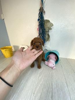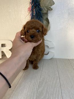 ★小ぶりで可愛い男の子★ 成犬時の予想サイズが2kg位の小ぶりタイニーサイズに仕上がりそうな子です!!! 顔がとっても可愛くて、目がクリクリしていて大きく、顔の形がまん丸さんです。 色味が濃いめのレッドで、写真撮影では、顔の表情を重視してカメラの明るさ設定をしていますので、実際には一段階以上濃い毛色でございます。 また、毛吹きは物凄く、毛量がとっても豊富で、毛質はかなり良い柔らかな毛質をしています。 性格は物怖じしないタイプで、撮影中も尻尾をピコピコフリフリして、色々な事に興味津々でした! 3匹兄弟の中で1番サイズの小さい子になります。 生後60日あたりにお引き渡しが可能です。 お支払いは現金決済のみとなります。 飼育の事やトリミングの事など、ご不安な点も、子犬の購入後の手続きの際に一つずつ丁寧にご指導いたしております。 ご安心して、お気軽にお問い合わせ下さいませ。 |