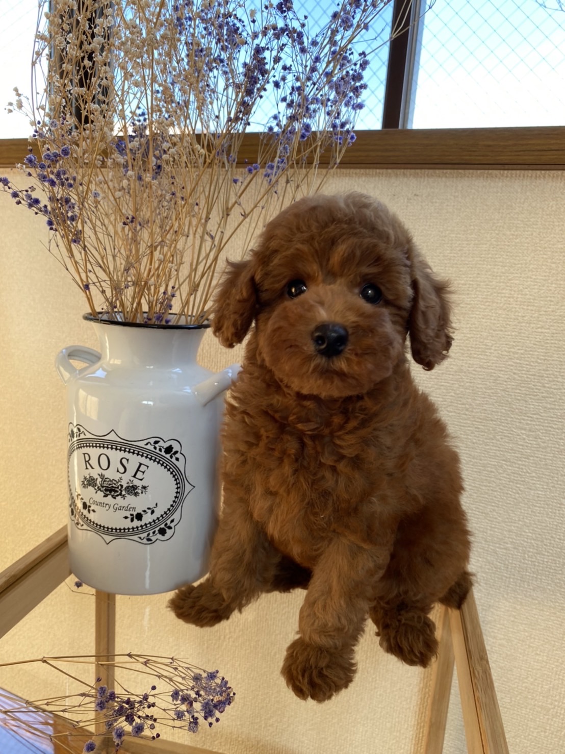 ※それぞれの画像の左上にある虫眼鏡ボタンを押して、元の画素数で必ずご覧くださいませ。 そのままですと画素数が下がっており暗く荒いです。 ★ディープレッド・トイサイズ★ 成犬時の予想サイズが4kg位のトイサイズを予想している男の子です。 毛量が抜群で、毛を掻き分けても地肌の見えないボリューム。 毛色は濃いレンガ色のかなり濃いディープレッドです。 中・大型犬との多頭飼育を希望される方や、小型犬飼育初心者、小さなお子様が居るご家庭、元気一杯のお子様が居る家庭、ランやアウトドアが好きな家庭、ウォーキングが趣味の方に最適です!! しっかりしていて、サイズとしても骨折などの心配が無い事、低血糖の心配が無い事などがございます。 性格は、サイズとは違い、温厚でおっとり、ゆったりとした性格で、穏やかなタイプに育っています。 犬質がかなり高いので、一人でブリーディングを営んでいて、ショーチャレンジや種雄、お婿さんとしての候補としてもオススメです!! 1回目のワクチン接種と健康診断が終わっており、すぐにお引渡しが可能です。 お支払いは現金決済のみとなります。 飼育の事やトリミングの事など、ご不安な点も、子犬の購入後の手続きの際に一つずつ丁寧にご指導いたしております。 ご安心して、お気軽にお問い合わせ下さいませ。 |