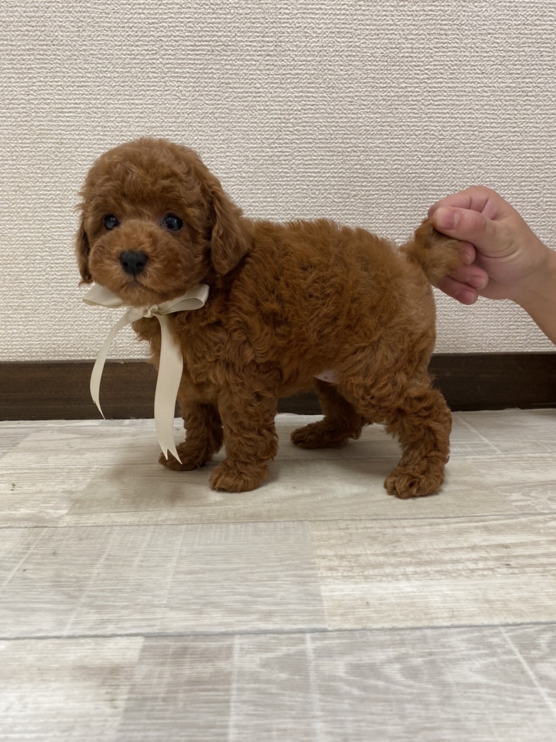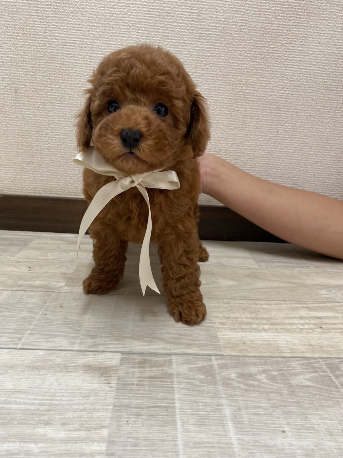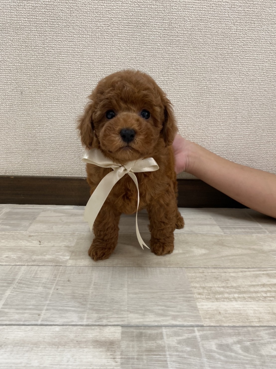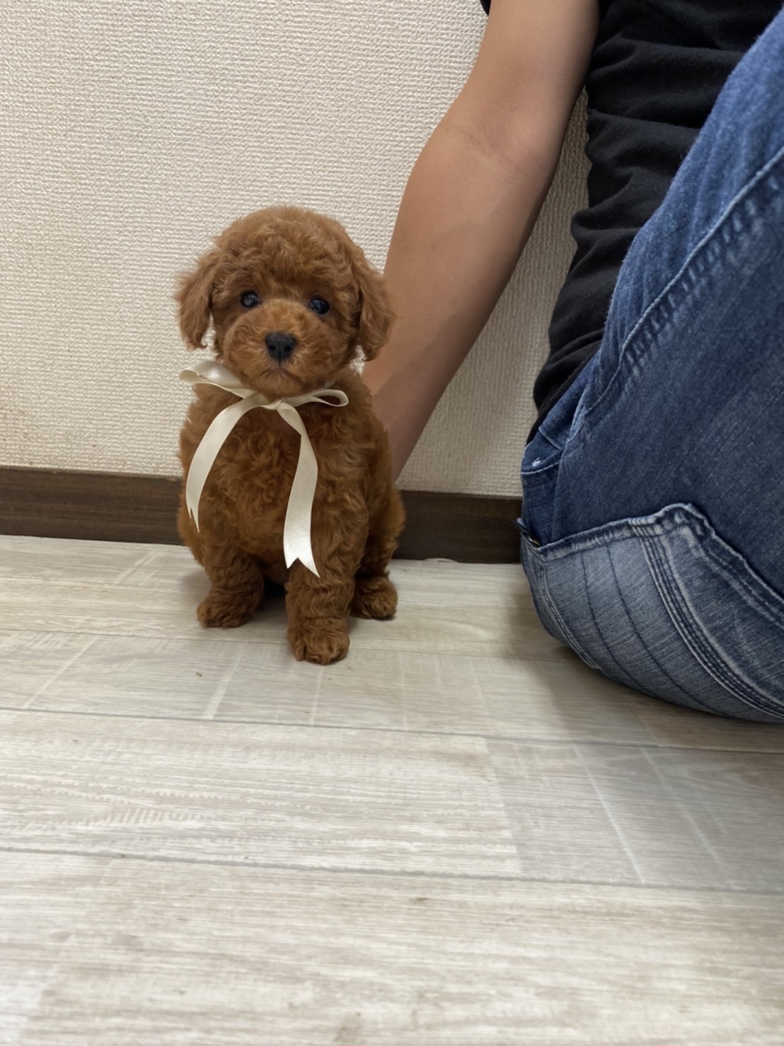 ※写真左にある虫眼鏡ボタンを押して、必ず元の画像をご確認ください ★毛量豊富で顔の可愛い女の子★ 成犬時の予想サイズ3kg位トイサイズで抱っこした時に丁度良いサイズ感の女の子です。 目がクリックリで丸く大きく、顔が全体的にかなり可愛くて、毛量、顔のパーツの配置など、とにかく完璧です!! 毛色はディープレッドで、毛量がかなりある子です!! 今は子犬達が沢山居る中、ケンカなどは一切せずに、とっても性格の良い子。 犬の質がとても良く、顔が可愛く、欠点など無く、お母さん犬としてお迎えするのも抜群に良いです。 1回目のワクチン接種と健康診断後の11月26日よりお引き渡しが可能です。 予約の為の見学を受け付けております。 予約の場合は、犬代金の半金をお支払いいただきます。 お客様のご都合による予約後のキャンセルはお受けできません。 お引き渡し当日に残金とワクチン代を頂戴いたします。 お支払い方法は現金決済のみとなっております。 飼育の事やトリミングの事など、ご不安な点も、子犬の購入後の手続きの際に一つずつ丁寧にご指導いたしております。 ご安心して、お気軽にお問い合わせ下さいませ。 |