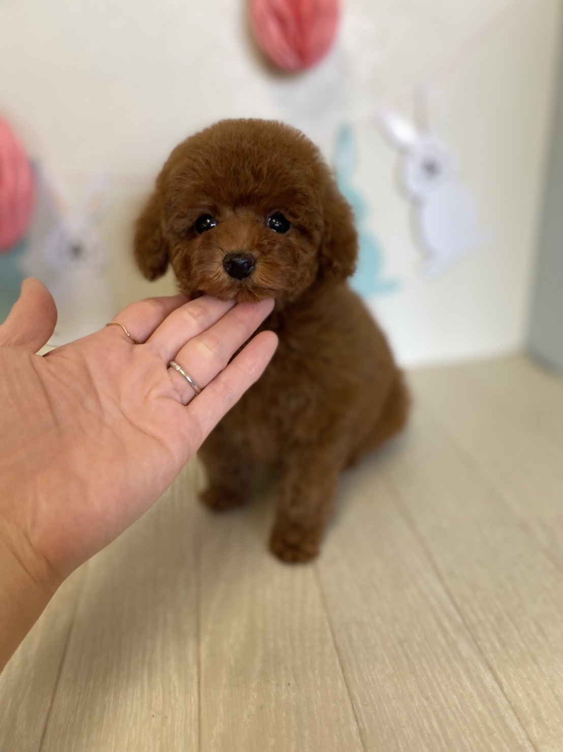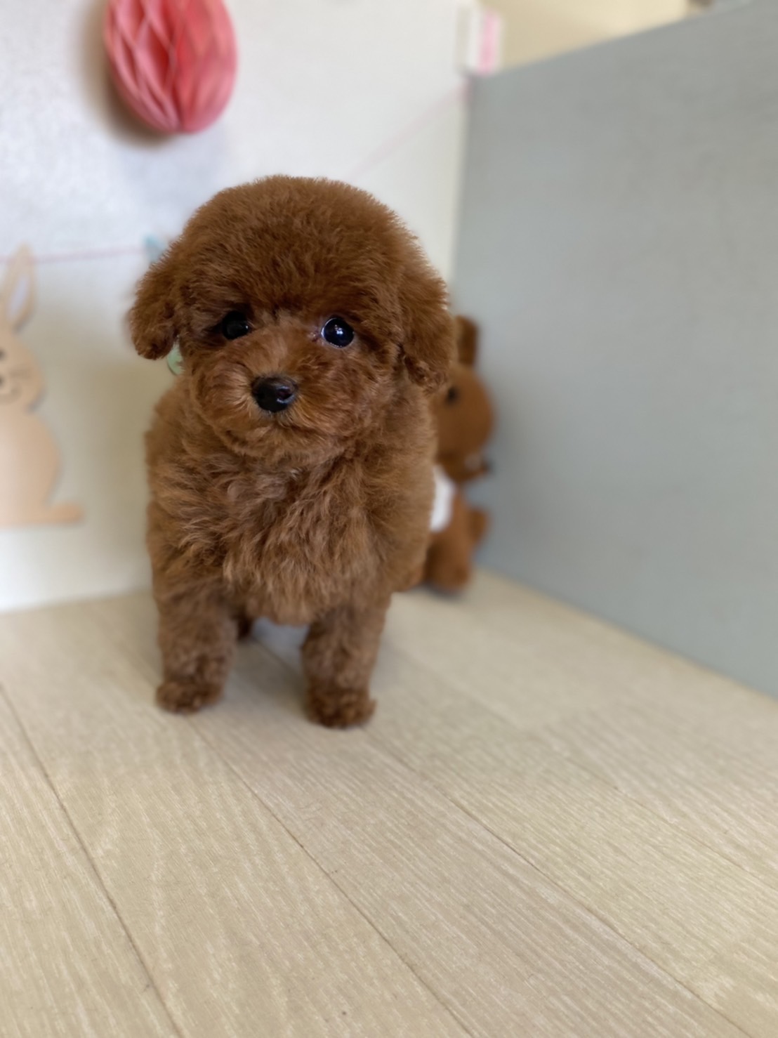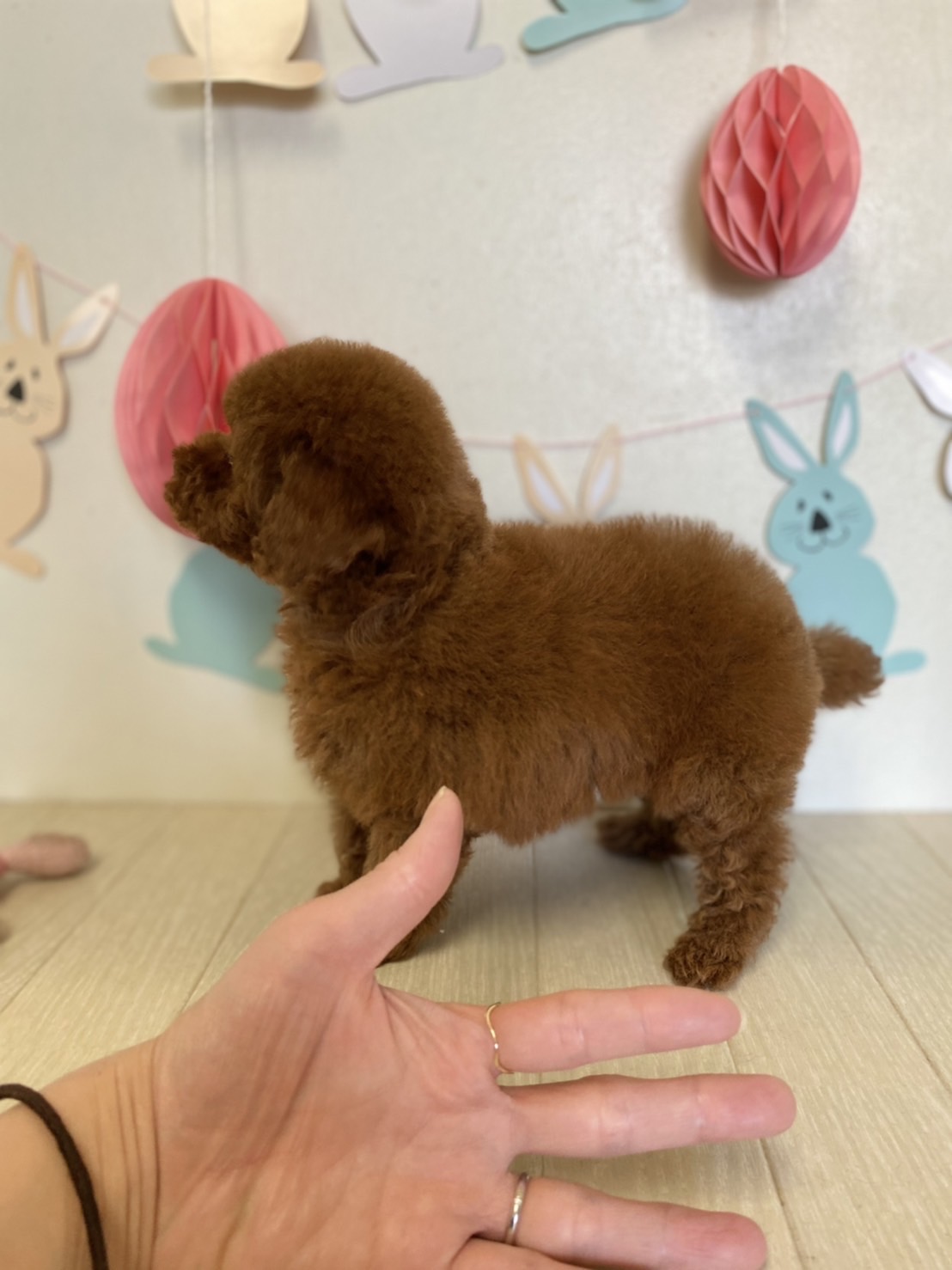 ★ギュギュギュッと詰まった男の子★ 成犬時の予想サイズが1.6kg位のティーカップサイズタイプに仕上がりそうな子です。 顔がとっても可愛くて、目がクリクリしていて大きく、マズルはビックリする位に猫の口元の様にドン詰まりです。 この家系は、チビチビ家系でな為、予想より小さく収まってしまう可能性もございます。 色味が濃いめのレッドで、写真撮影では、顔の表情を重視してカメラの明るさ設定をしていますので、実際には一段階以上濃い毛色でございます。 また、毛吹きは物凄く、毛量がとっても豊富で、毛質はかなり良い柔らかな毛質をしています。 性格は甘えん坊さんで人が大好きな子です。 お支払い方法は現金決済となります。 1回目のワクチン接種と健康診断が終わっており、すぐにお引き渡しが可能です。 飼育の事やトリミングの事など、ご不安な点も、子犬の購入後の手続きの際に一つずつ丁寧にご指導いたしております。 ご安心して、お気軽にお問い合わせ下さいませ。 |