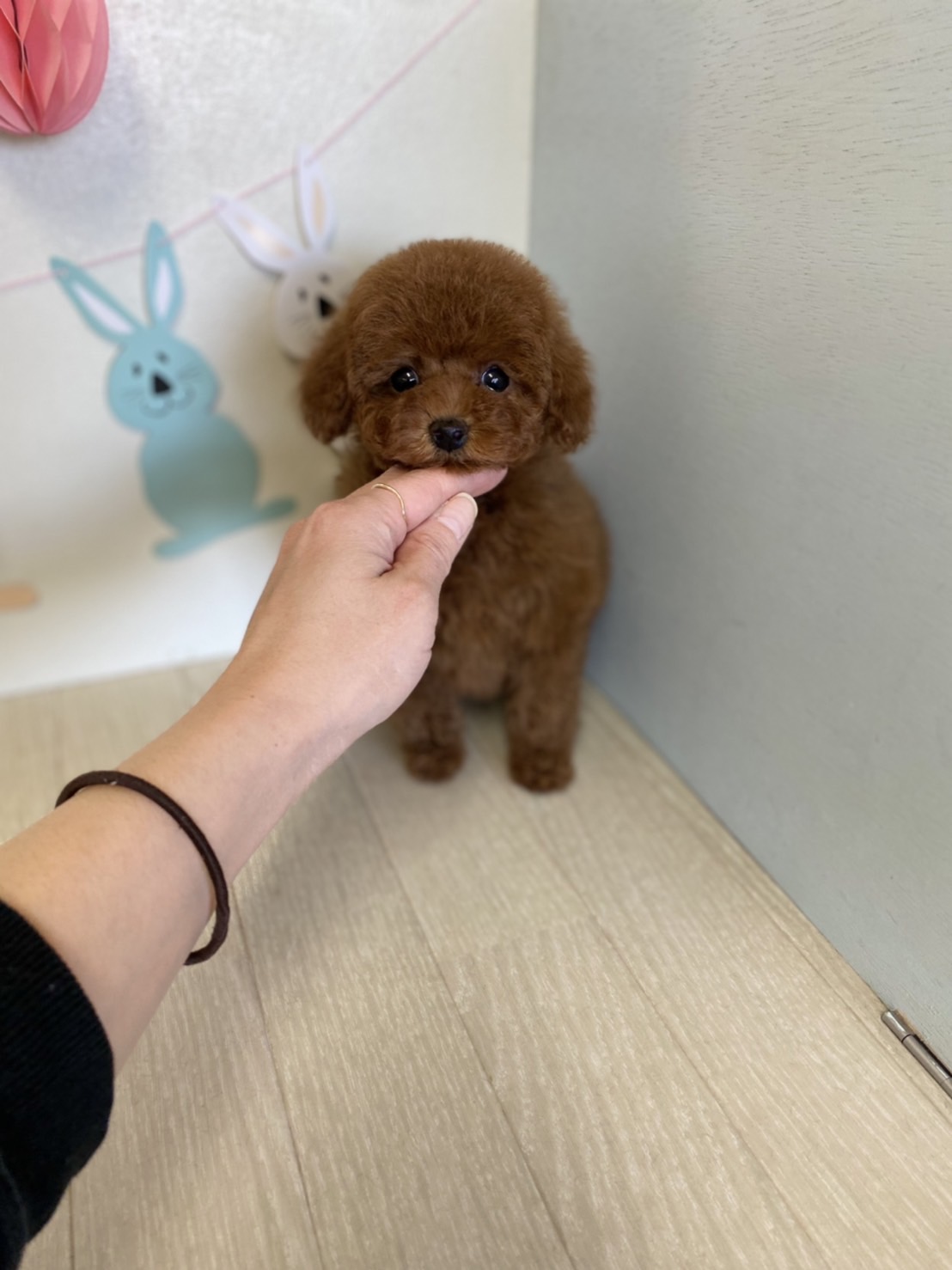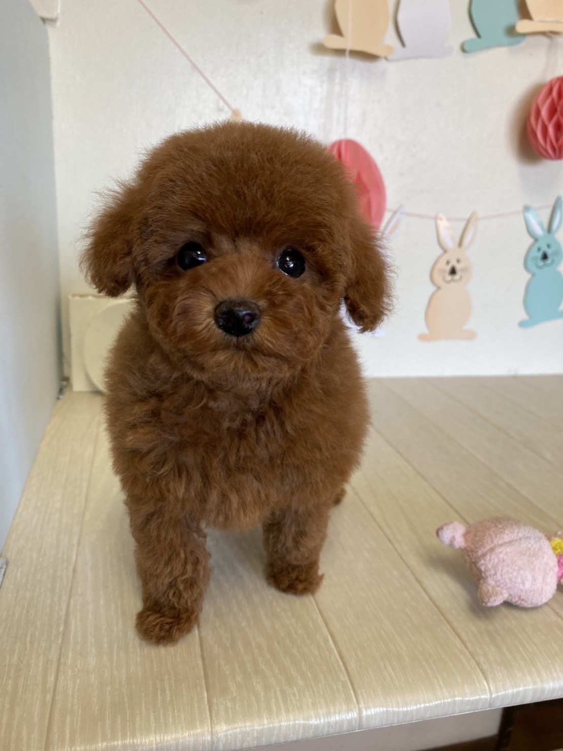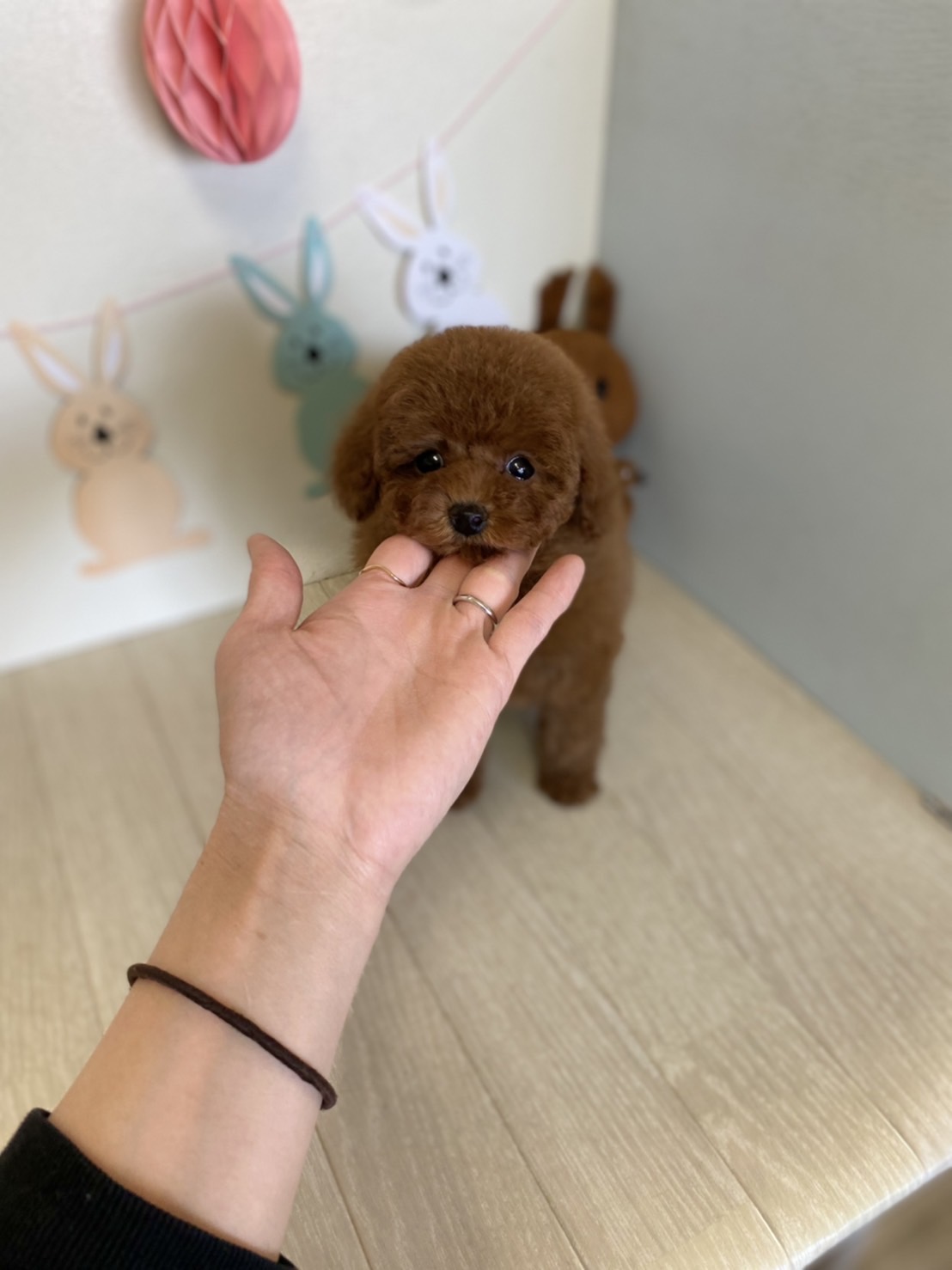 ★ギュギュギュッと詰まった男の子★ 成犬時の予想サイズが1.6kg位のティーカップサイズタイプに仕上がりそうな子です。 顔がとっても可愛くて、目がクリクリしていて大きく、マズルはビックリする位に猫の口元の様にドン詰まりです。 この家系は、チビチビ家系でな為、予想より小さく収まってしまう可能性もございます。 色味が濃いめのレッドで、写真撮影では、顔の表情を重視してカメラの明るさ設定をしていますので、実際には一段階以上濃い毛色でございます。 また、毛吹きは物凄く、毛量がとっても豊富で、毛質はかなり良い柔らかな毛質をしています。 性格は甘えん坊さんで人が大好きな子です。 お支払い方法は現金決済となります。 1回目のワクチン接種と健康診断が終わっており、すぐにお引き渡しが可能です。 飼育の事やトリミングの事など、ご不安な点も、子犬の購入後の手続きの際に一つずつ丁寧にご指導いたしております。 ご安心して、お気軽にお問い合わせ下さいませ。 |