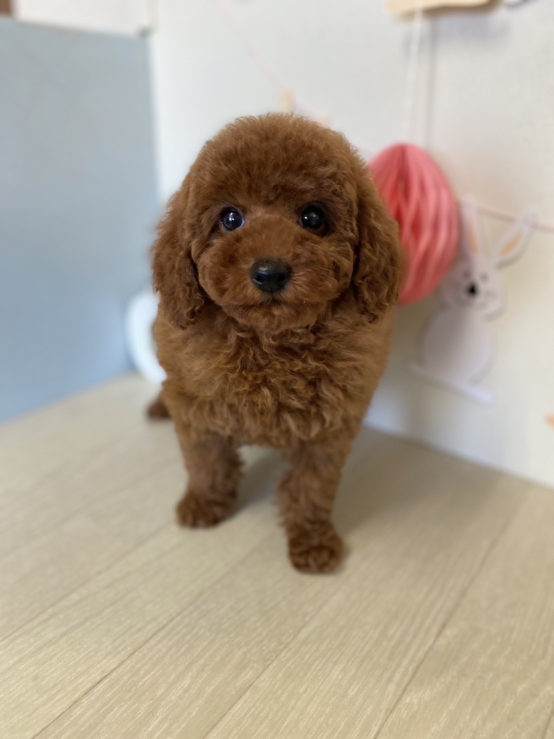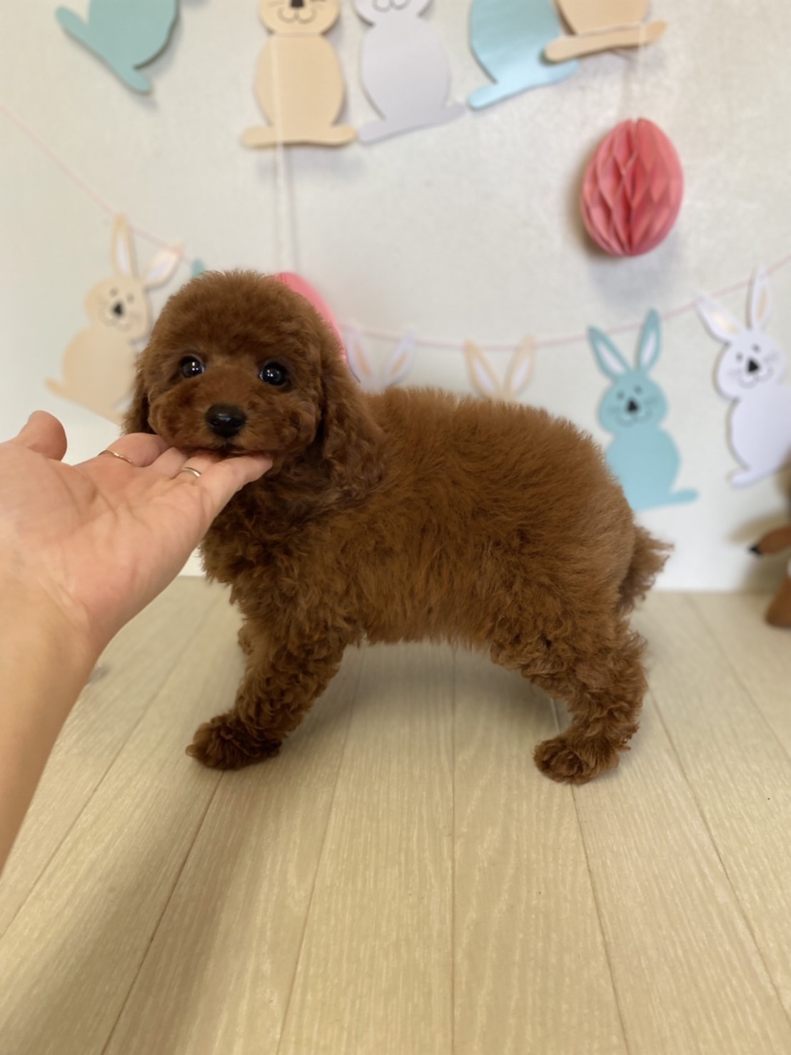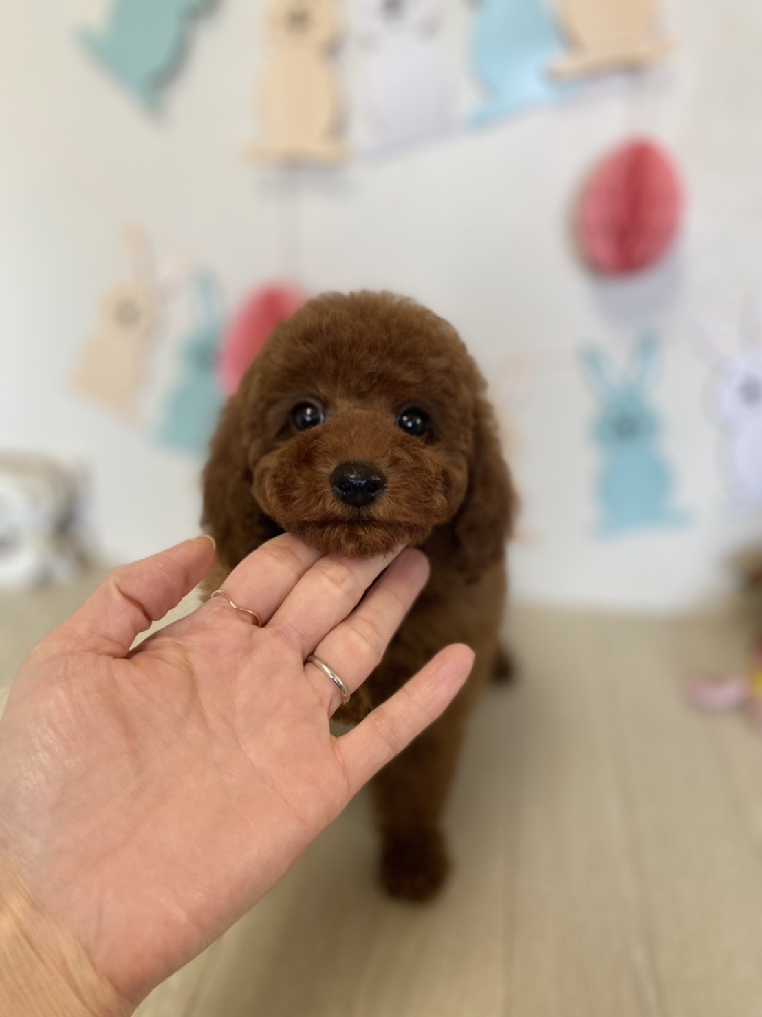 ※それぞれの画像の左上にある虫眼鏡ボタンを押して、元の画素数で必ずご覧くださいませ。 そのままですと画素数が下がっており暗く荒いです。 ★ディープレッド・毛量抜群★ 成犬時の予想サイズが3kg前後位のタイニー〜トイ前半サイズを予想している男の子です。 毛量が抜群で、毛を掻き分けても地肌の見えないボリューム。 毛色は濃いレンガ色のかなり濃いディープレッドです。 中・大型犬との多頭飼育を希望される方や、小型犬飼育初心者、小さなお子様が居るご家庭、元気一杯のお子様が居る家庭、ランやアウトドアが好きな家庭、ウォーキングが趣味の方に最適です!! しっかりしていて、サイズとしても骨折などの心配が無い事、低血糖の心配が無い事などがございます。 性格は、サイズとは違い、温厚でおっとり、ゆったりとした性格で、穏やかなタイプに育っています。 1回目のワクチン接種と健康診断が終わっており、すぐにお引渡しが可能です。 お支払いは現金決済のみとなります。 飼育の事やトリミングの事など、ご不安な点も、子犬の購入後の手続きの際に一つずつ丁寧にご指導いたしております。 ご安心して、お気軽にお問い合わせ下さいませ |