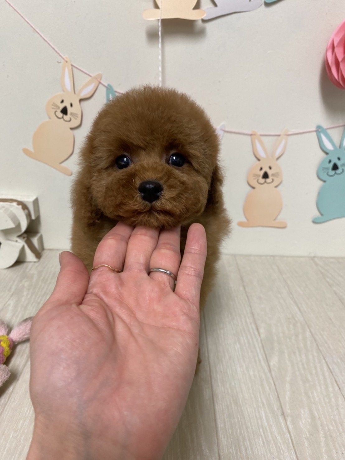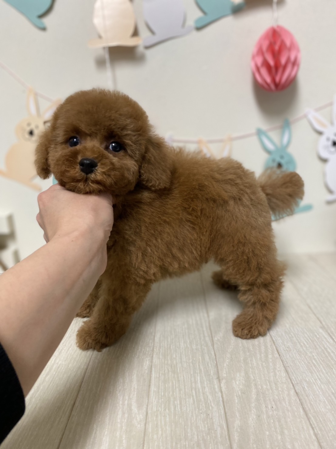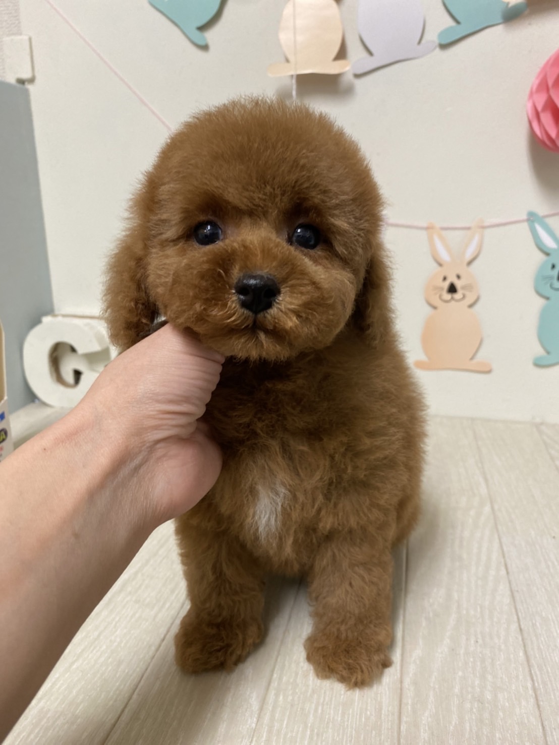 ※それぞれの画像の左上にある虫眼鏡ボタンを押して、元の画素数で必ずご覧くださいませ。 そのままですと画素数が下がっており暗く荒いです。 ★毛量抜群のベビーフェイスくん★ 成犬時の予想サイズが2.3kg位のタイニーサイズタイプの男の子です。 胸にミスカラーが入りましたので、その分価格を低く設定しておりますが、ミスカラー(ドッグショーに出られないというだけのもので、健康上の問題はありません。)以外は申し分の無いかなり良い犬質です。 毛量がとっても豊富なので、密度があり、 毛を掻き分けても地肌が出ない子です。 とっても目が大きくデカい子になります。 写真だと、目が強調されすぎて可愛く撮れていませんが、実物は目がクリクリでマズルの短い小さな子です。 1回目のワクチン接種と健康診断が終わっており、すぐにお引き渡しが可能です。 お支払い方法は現金払いのみとなっております。 飼育の事やトリミングの事など、ご不安な点も、子犬の購入後の手続きの際に一つずつ丁寧にご指導いたしております。 ご安心して、お気軽にお問い合わせ下さいませ。 |