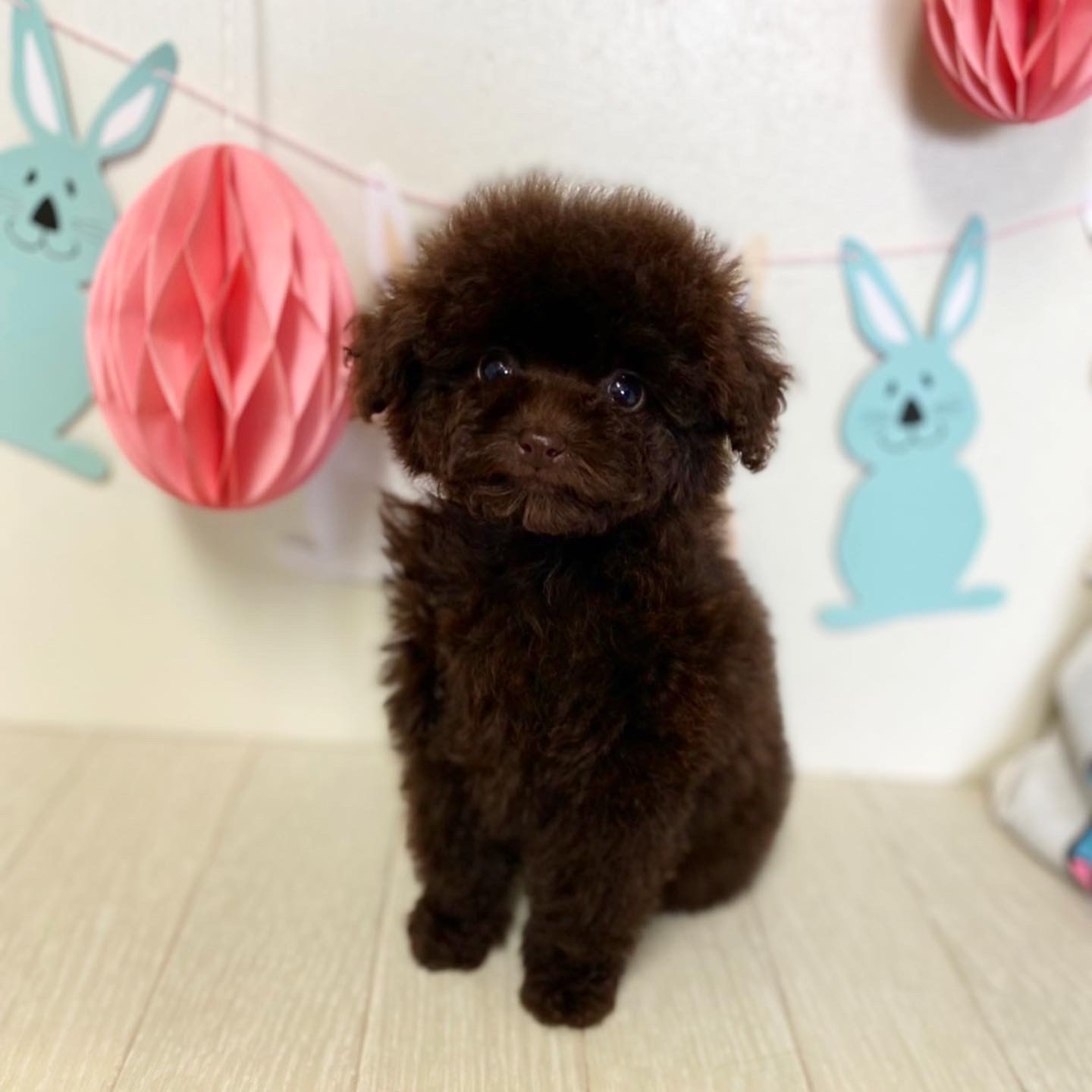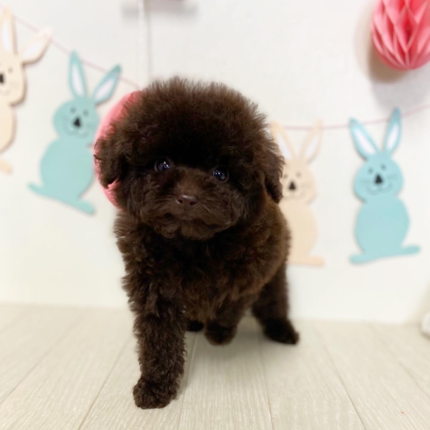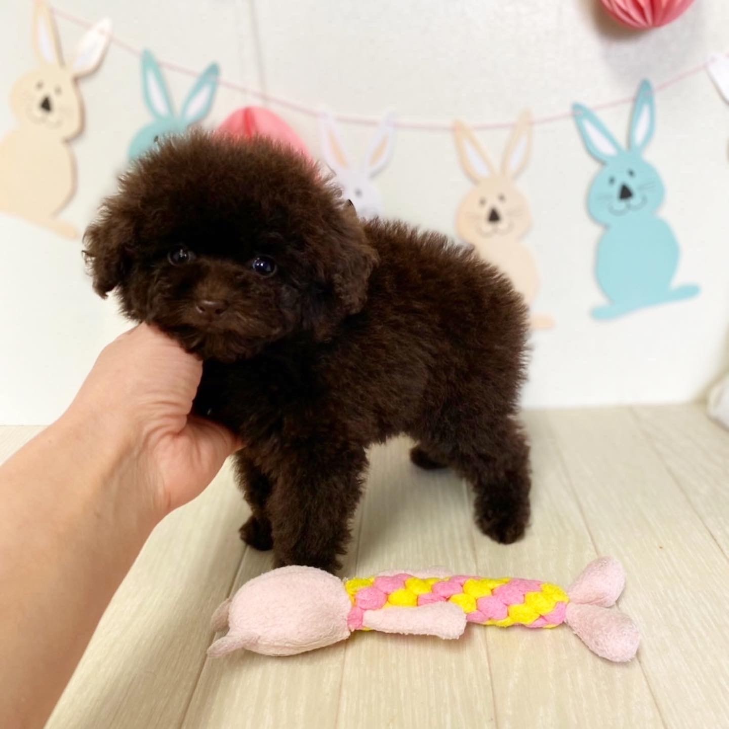 ※それぞれの画像の左上にある虫眼鏡ボタンを押して、元の画素数で必ずご覧くださいませ。 そのままですと画素数が下がっており暗く荒いです。 ★小さい・目はまん丸・マズルどん詰まり★ PRA発症しません。 成犬時の予想サイズが1.3kg位のティーカップサイズ予想の女の子です。 もう既に70日を超えましたが、とっても小さいのに、コロコロでムチムチしてます! 差し毛やミスカラーはありません。 色素はとても濃く、年齢経過で鼻の色素が薄くなる事はありません。 毛色もとても綺麗な濃いビターブラウンで、当ケネルの子は白髪が生える事は勿論ありますが、退色が殆どなく、高齢期でようやく退色してきたかな?と言う程度の本物のブラウンになります!!! とっても自信があります٩(^‿^)۶ フレンドリーな性格の子で、他の子犬達ととても仲良く遊んで生活しています♪ 目がクリクリしていて、顔のとても可愛い子で、ゴリラ顔ではありません。どちらかと言うとリス猿の様な可愛らしい顔つきのタイプです。 欠点など無しとなります。 毛量はとにかく豊富で、密度がとてもあります。 健康診断とワクチンが済んでおり、すぐにお引き渡し可能です。 お支払い方法が現金決済のみとなっております。 飼育の事やトリミングの事など、ご不安な点も、子犬の購入後の手続きの際に一つずつ丁寧にご指導いたしております。 ご安心して、お気軽にお問い合わせ下さいませ。 |