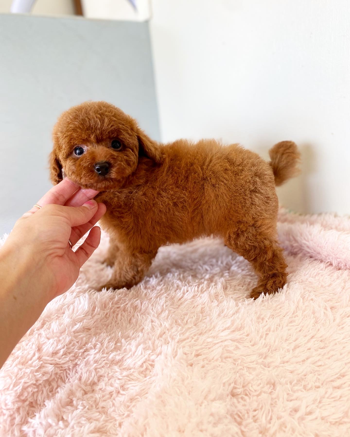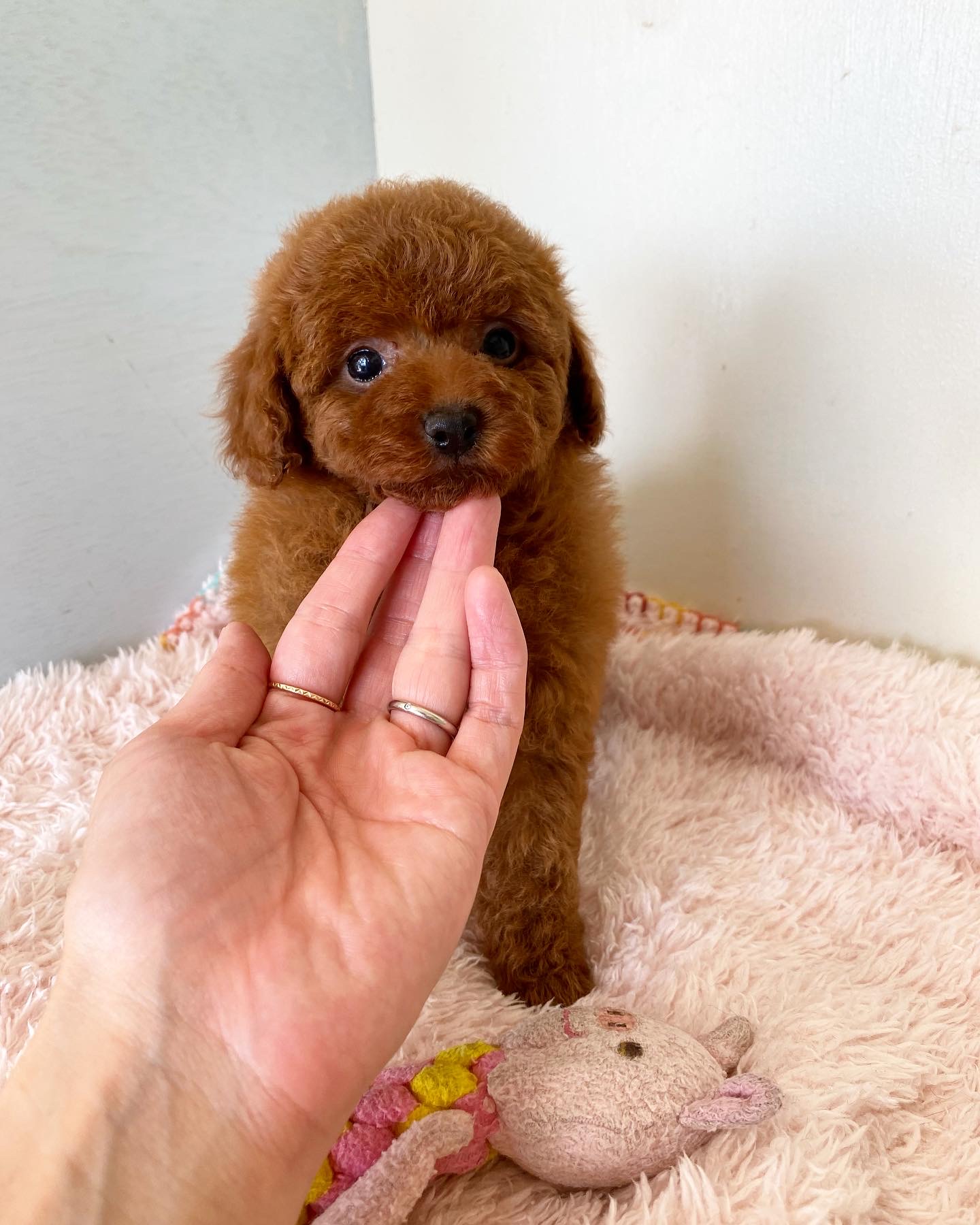 ※それぞれの画像の左上にある虫眼鏡ボタンを押して、元の画素数で必ずご覧くださいませ。 そのままですと画素数が下がっており暗く荒いです。 ★毛量抜群・ディープレッド★ 成犬時の予想サイズが2.5kg位のタイニーサイズタイプの男の子です。 色味は濃いディープレッドで、顔がハッキリ写る様に、カメラの明るさを明るくして撮影していますので、実物の方が濃いです。 胸にミスカラーが入りましたので、その分価格を低く設定しておりますが、ミスカラー(ドッグショーに出られないというだけのもので、健康上の問題はありません。)以外は申し分の無いかなり良い犬質です。 毛量がとっても豊富なので、密度があり、 毛を掻き分けても地肌が出ない子です。 とっても目が大きくデカい子になります。 子犬の時点で二重の瞼がある子はクリクリな目になりますよ! 1回目のワクチン接種と健康診断が終わっており、すぐにお引き渡しが可能です。 お支払い方法は現金払いのみとなっております。 飼育の事やトリミングの事など、ご不安な点も、子犬の購入後の手続きの際に一つずつ丁寧にご指導いたしております。 ご安心して、お気軽にお問い合わせ下さいませ。 |