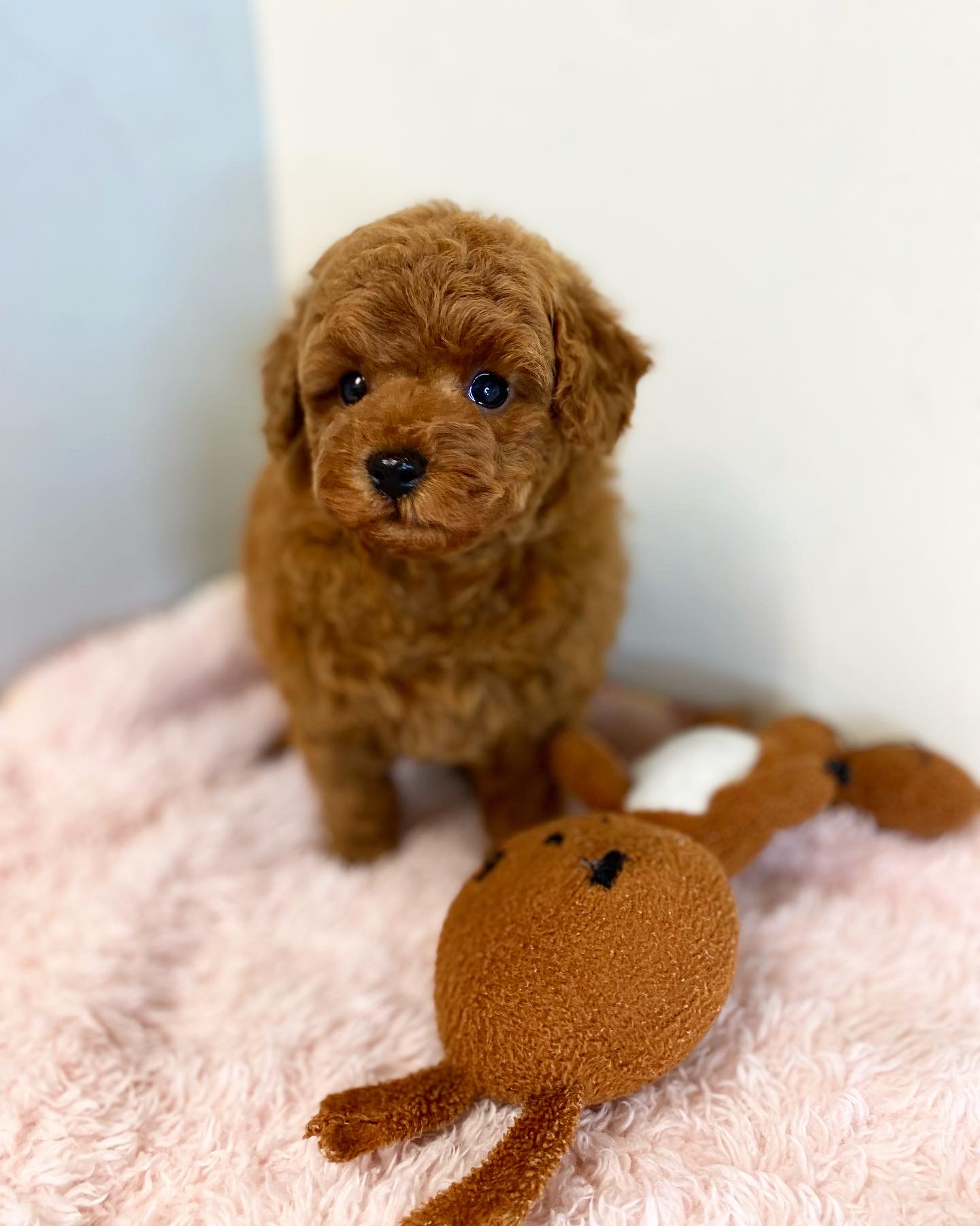※それぞれの画像の左上にある虫眼鏡ボタンを押して、元の画素数で必ずご覧くださいませ。 そのままですと画素数が下がっており暗く荒いです。 ★ディープレッド・毛量最高・毛質最高★ 成犬時の予想サイズが2.8kg位のタイニーサイズタイプの男のです。 濃いレッドカラーで、毛量は今年1番で、毛質も柔らかく、しなやかで今年1番!!! 優しく穏やかな性格をしている子で、3匹兄妹なので、噛まれたら痛い、噛んだら痛いなど、しっかりと社会性を身につけながら生活してます。 とっても穏やかで優しい性格に育っております。 法令遵守の為、10月18日よりお引き渡しが可能です。 18日以前におきましては、半金お支払いいただいたお客様で確定いたします。お客様の都合によるキャンセルの際は、予約金の返金が出来ませんので、よくご検討の上お問い合わせくださいませ。 18日以降につきましては、見学、決定、そのままお連れいただきます。予約はございません。 お支払い方法は現金払いのみとなっております。 飼育の事やトリミングの事など、ご不安な点も、子犬の購入後の手続きの際に一つずつ丁寧にご指導いたしております。 ご安心して、お気軽にお問い合わせ下さいませ。 |